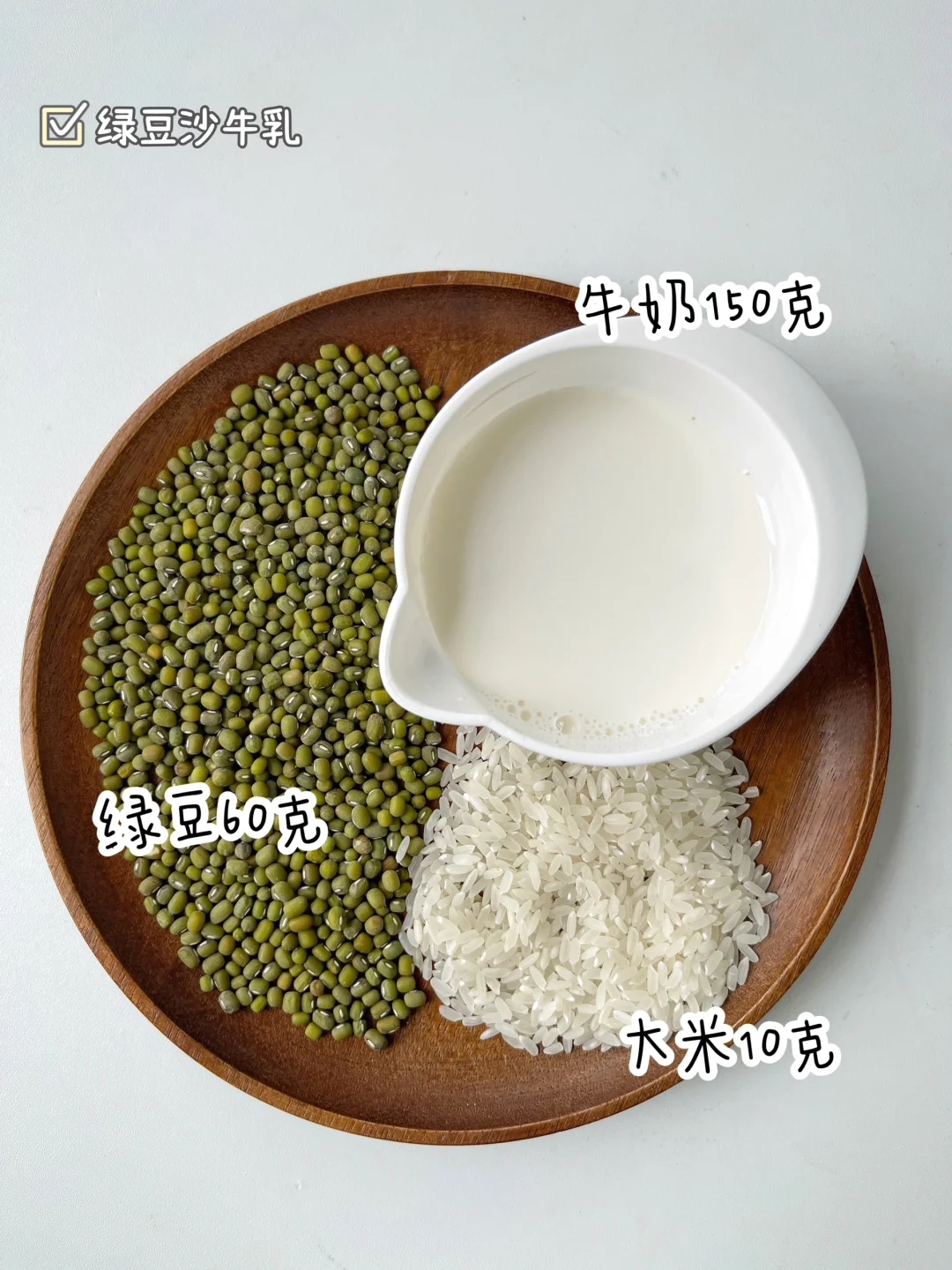 🔹绿豆60克、大米10克,牛奶150克、清水400毫升