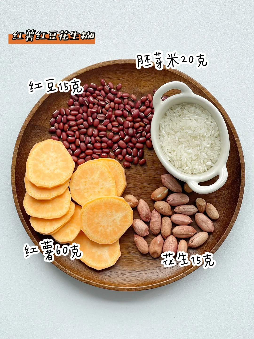✅红薯红豆花生糊:红薯60克、红豆15克、花生15克、胚芽米20克、清水300毫升