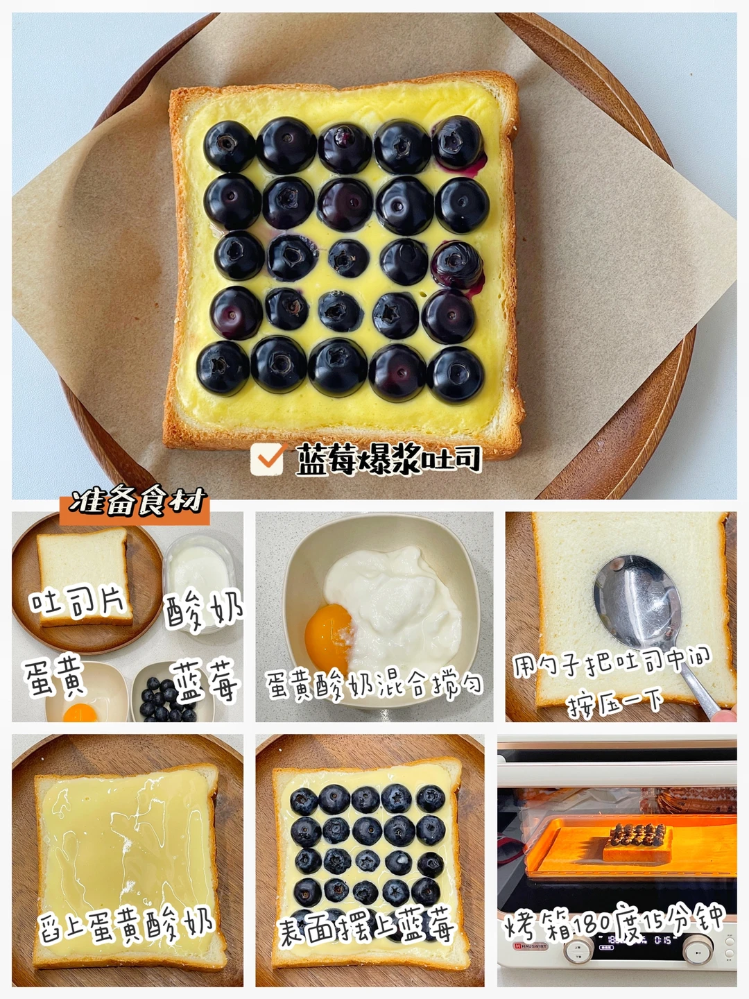 ✅准备食材:吐司片、蓝莓、酸奶、蛋黄