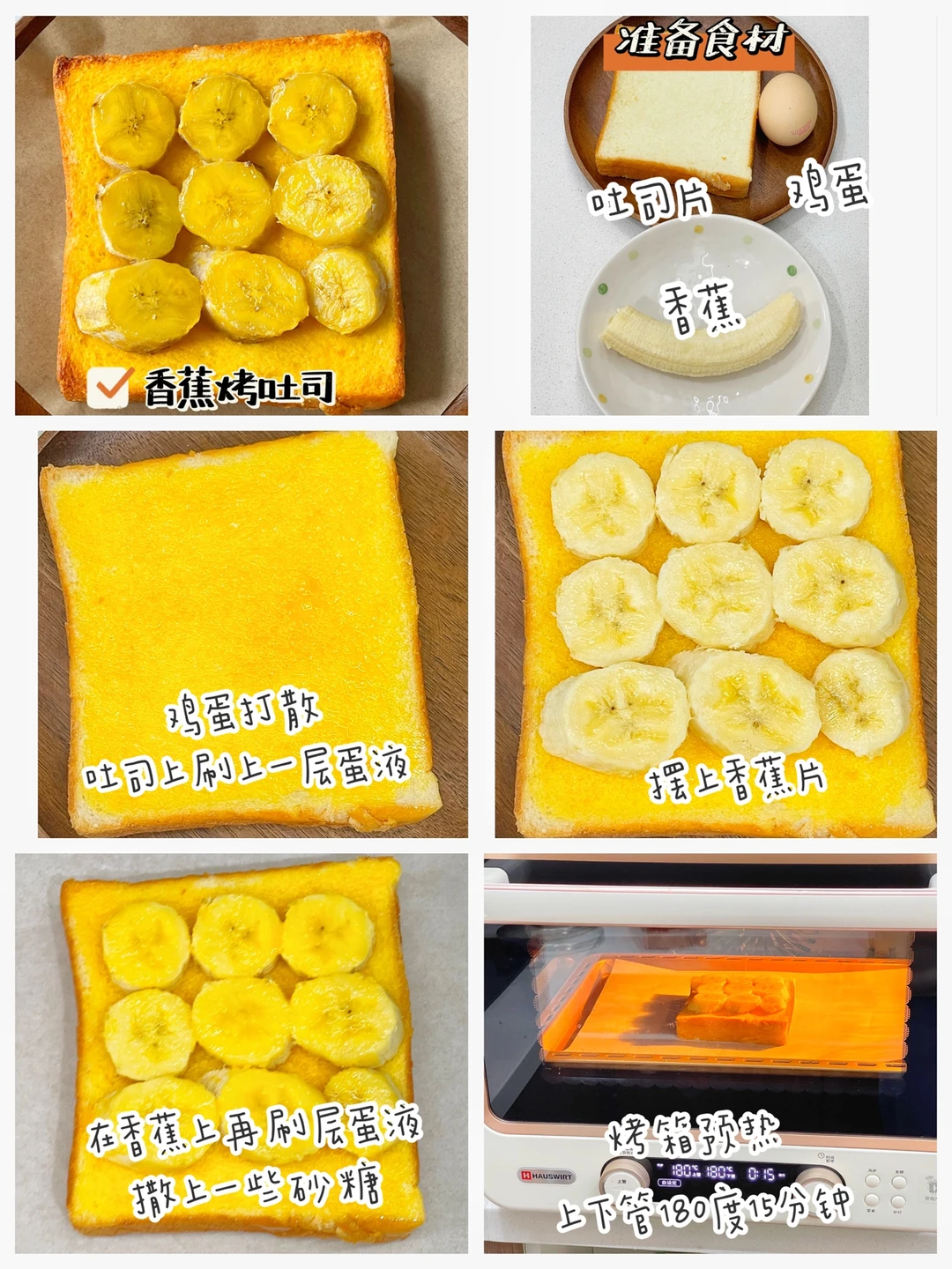 ✅准备食材:吐司片、香蕉、鸡蛋
