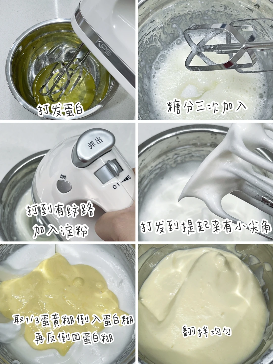 ✅用到的工具是祈和打蛋器KS938AN,350W的功率,有5挡位可选,打发蛋白又快又稳定。