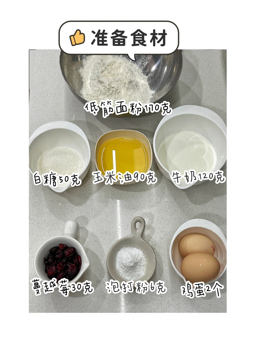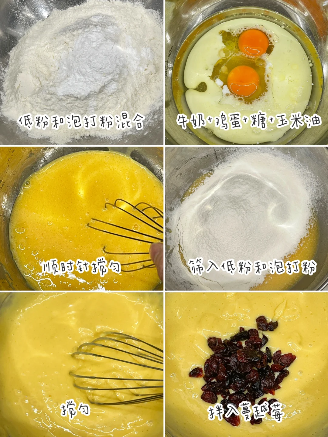 烘焙小白也能一次成功的蔓越莓麦芬蛋糕,真的太好吃啦, 无需打发,只要搅一搅就能安排,再搭配一杯只售当天的鲜牛奶,营养更加分,给家人当早餐或下午茶都超受欢迎。 ✅准备食材:低筋面粉170克、牛奶120克、玉米油90克、白糖50克、泡打粉6克、鸡蛋2个、蔓越莓30克。 ✅制作方法: 🔹低粉喝泡打粉混合。牛奶+鸡蛋+糖+玉米油混合搅匀。 🔹筛入低粉和泡打粉,顺时针搅匀,最后拌入蔓越莓。 倒入蛋糕模具9分满。 🔹放入预热好的烤箱,上下管170度30分钟。