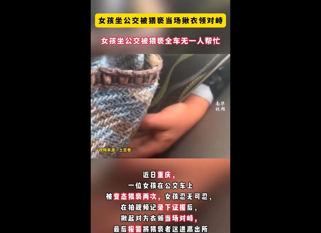 重庆一女孩乘公交时遭猥亵两次,忍无可忍后拍视频取证,当场揪着猥亵者衣领对峙,最终报警将人送进派出所。 事后她发文称,最心寒的是整个车厢无一人帮忙,引发网友热议。 网友既赞其勇敢理性,也提醒优先保障自身安全,分析沉默或因未目睹细节、怕被讹,还提及上海地铁乘客协助报警等正面案例对比。 “没亲眼见” 不是免责牌,是逃避责任的借口! 就算猥亵动作隐蔽,可女孩都当众对峙了,车厢里的人就算没看清前因,也该察觉到不对劲吧? 问一句 “是不是遇到麻烦”、悄悄拨个报警电话,难吗? 说到底,还是 “事不关己高高挂起” 的冷漠在作祟,怕卷入纠纷、怕惹麻烦,把别人的困境当成了与自己无关的热闹。 女性维权难,难在连旁观者的 “微光” 都没有! 女孩要自己拍证据、自己对峙,还要承受 “硬刚不安全” 的担忧,而本该是 “同伴” 的乘客却集体沉默。 之前 “救人反被讹” 的案例确实让人心寒,但这不能成为见恶不救的理由 —— 多数时候,旁观者的一声支持,就能让猥亵者心虚,让受害者少些孤立无援。 社会缺的不是 “谨慎”,是 “别怕事” 的勇气! 总有人说 “乘客没义务冒险”,可协助报警、出声制止根本算不上 “冒险”。 上海地铁乘客主动录像、威海乘客合力制止的案例证明,只要有人带头,更多人就会站出来。 要是人人都拿 “没看见”“怕麻烦” 当挡箭牌,只会让猥亵者更嚣张,下次被欺负的,可能就是我们自己或家人!