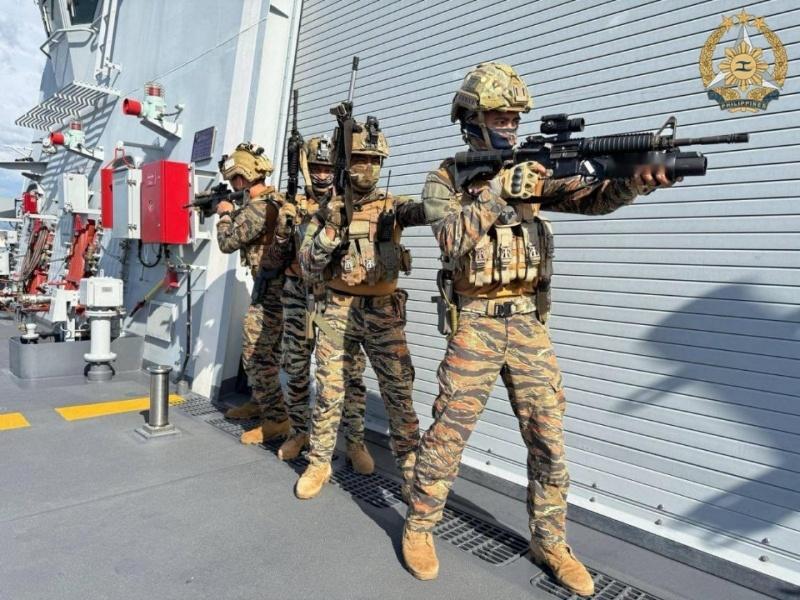美菲一周内举行两次海上联合演练,菲海军特种部队举行VBSS演练——12月9号~12月10号,以及12月15号,美菲在南海接连举行第9次和第10次所谓的双边海上合作活动(MCA)。其中第9次MCA,美国海军派出拉斐尔·佩拉塔号驱逐舰(DDG-115)与P-8A反潜巡逻机,菲律宾派出何塞·黎刹号护卫舰(FF150)、3架FA-50战斗机和3架A-29B战机等,主要进行海上战术演练、机动演练、夜间协同航行以及战机低空飞越等,如图1~图3;第10次MCA中,美军派出钱瑟勒斯维尔号巡洋舰(CG-62),的黎波里号两栖攻击航母(LHA-7)也在附近海域,但是没有参加演习,菲律宾则派出其最新的米格尔·瓦格尔号护卫舰(FFG-06)、3架FA-50、3架A29B,以及1架搜救直升机等,主要进行海上通信演练、海域感知演练、突袭演习以及低空飞越等。其间,值得注意的是,菲律宾海军特种部队还在米格尔·瓦格尔号上进行了查证、登船、搜查、扣押,即VBSS训练演习,如图4~图6。烽火问鼎计划热点观点