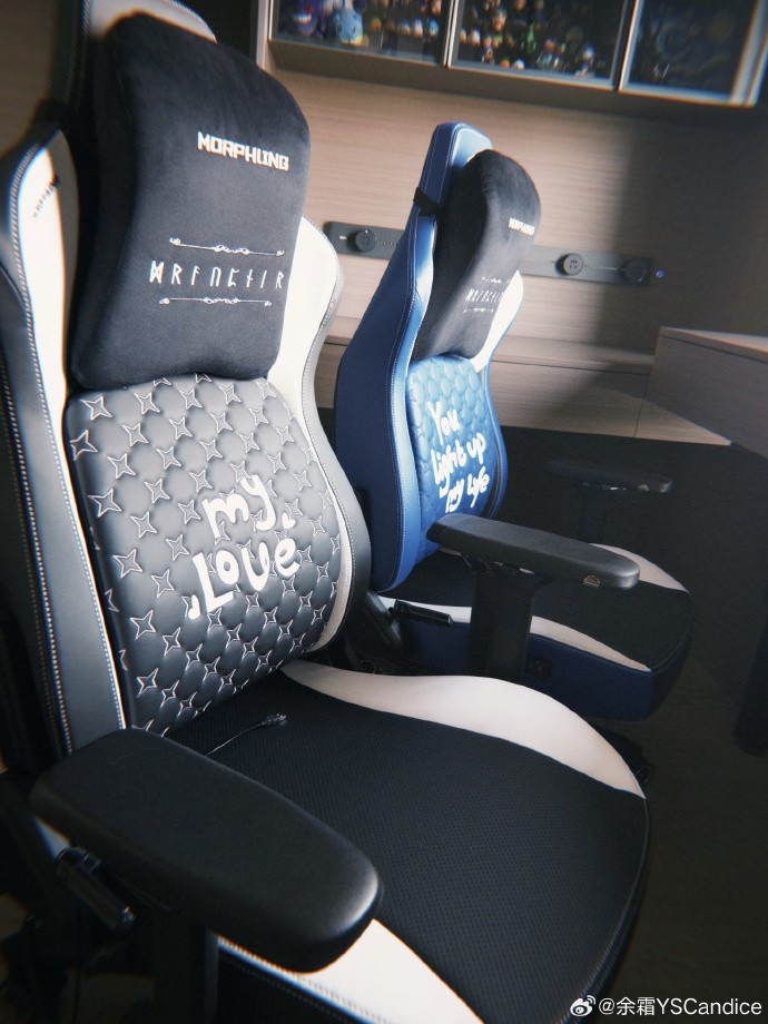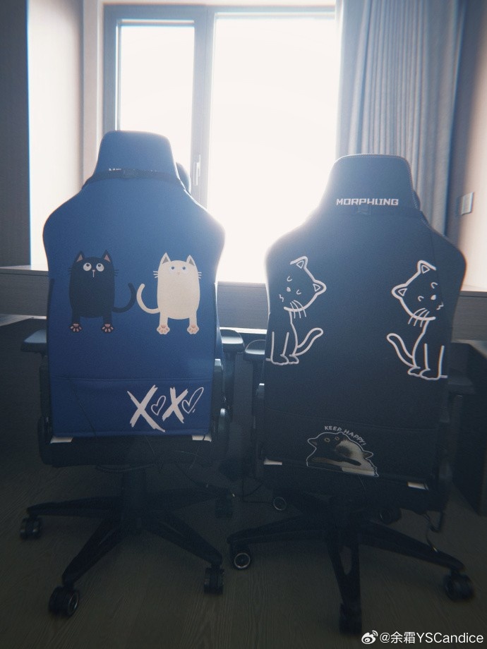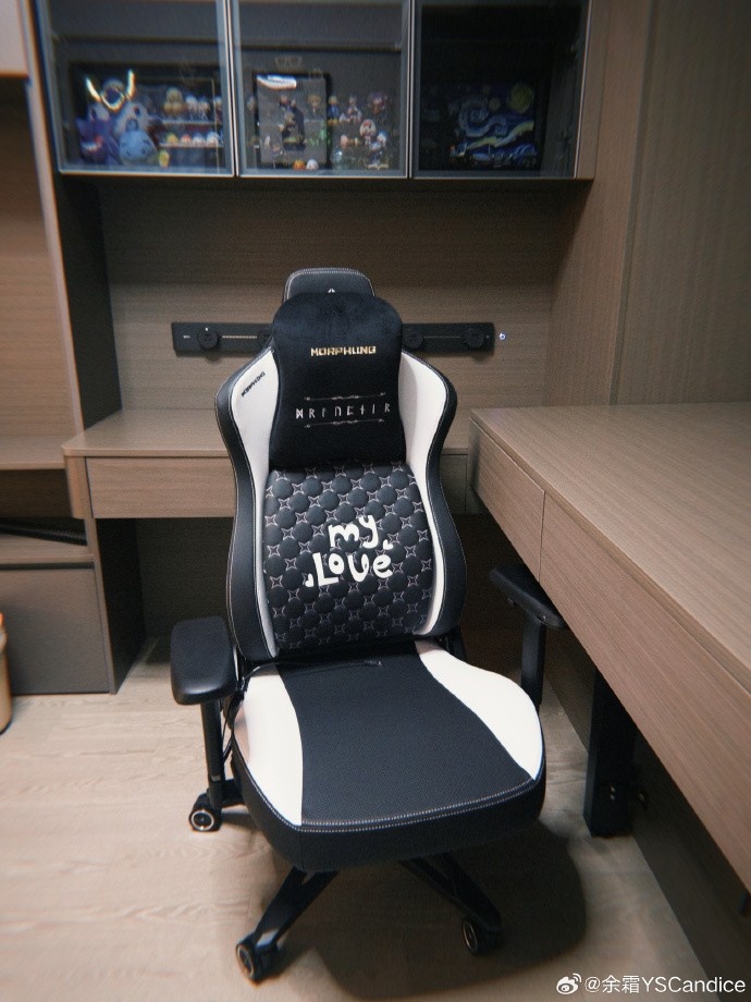 余霜分享新买的电竞椅:定制款变体精灵YYDS!以后可以双排上分了