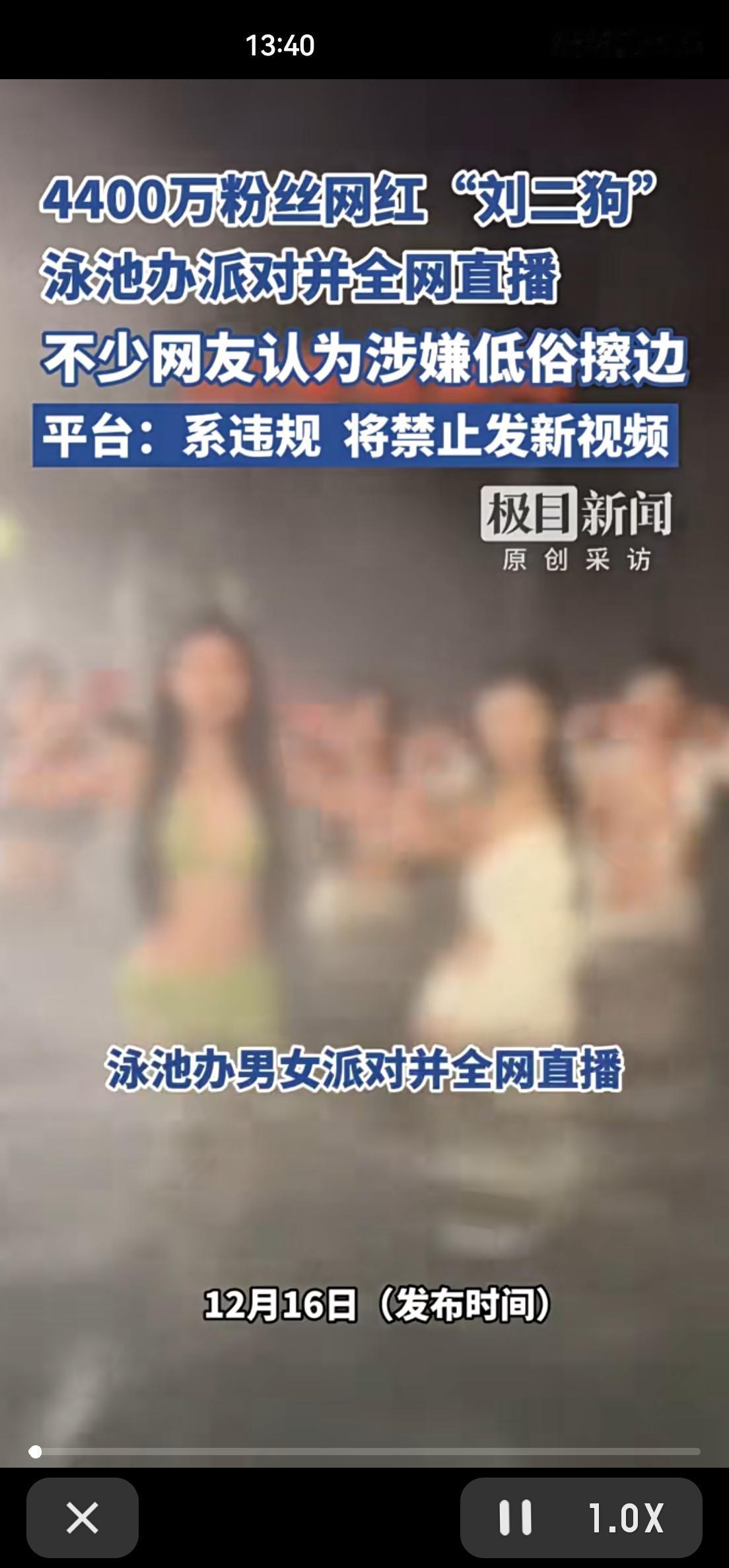 泳池派对直播被掐!让一4400万粉丝的网红“翻车”! 网友最近炸锅了,一段网红“刘二狗”在泳池开派对的直播切片,在网上传疯了。画面引来不少质疑,很多人直指内容“辣眼睛”,在打低俗擦边球。这事儿很快闹大,记者向快手平台反映了情况。12月15日,平台给出回应:这个账号确实违规,已经处理了。 说白了,网红想博眼球、挣流量,心思能理解。但泳池、派对、全网直播这几个词放一块,味道就容易变。内容创作不是没有界限,尤其面对包括许多年轻人在内的海量观众。流量背后是责任,哗众取宠或许能换来一时热度,但踩过红线,换来的一定是凉凉。平台这次出手,也算给所有人提了个醒:网络不是法外之地,公开传播的内容必须守住底线。 追求流量没错,但得用对地方。输出有趣、有料、有价值的内容,路才能走得长远。靠偏门吸睛,注定是条死胡同。 有网友认为,这种内容纯属娱乐,没必要上纲上线;也有网友坚决支持平台处罚,认为必须净化网络空间。你觉得网红直播的边界到底该怎么划?网红圈整顿 网红二狗 小二狗专场直播 狗直播带货翻车 刘二狗家族赛 日照网红狗 李二狗晚宴
