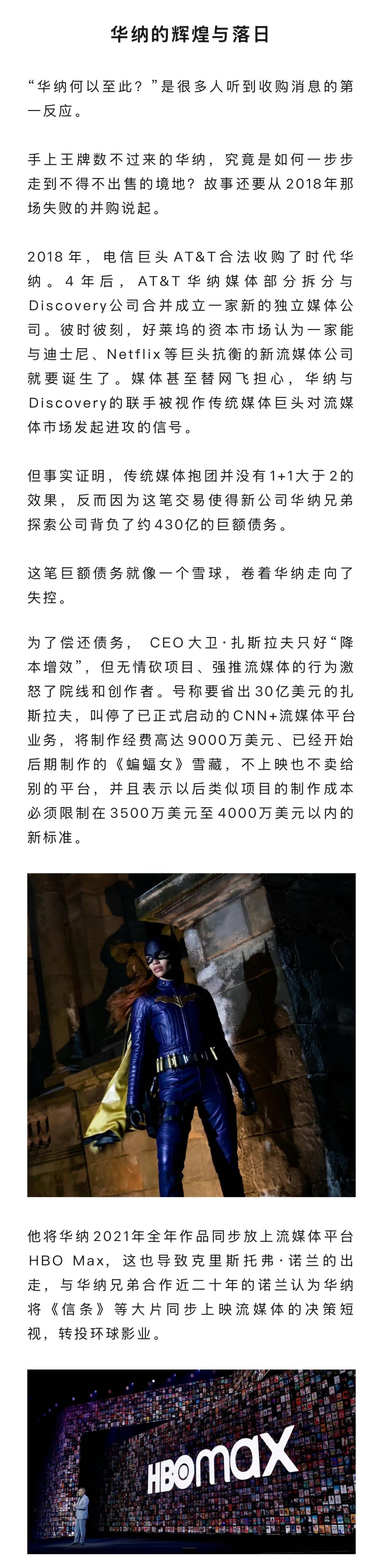 华纳兄弟为何要卖身好莱坞未来格局 巨额债务就像一个雪球,卷着华纳走向了失控。 为