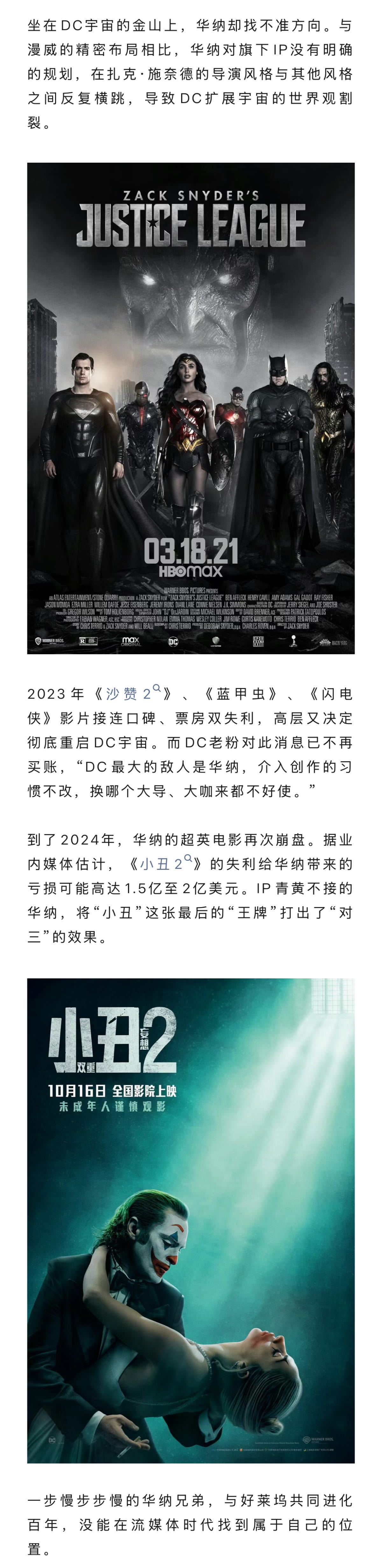 华纳兄弟为何要卖身好莱坞未来格局 巨额债务就像一个雪球,卷着华纳走向了失控。 为了偿还债务, CEO无情砍项目、强推流媒体的行为激怒了院线和创作者。对IP没有明确规划,超英电影崩盘后华纳无力自救。