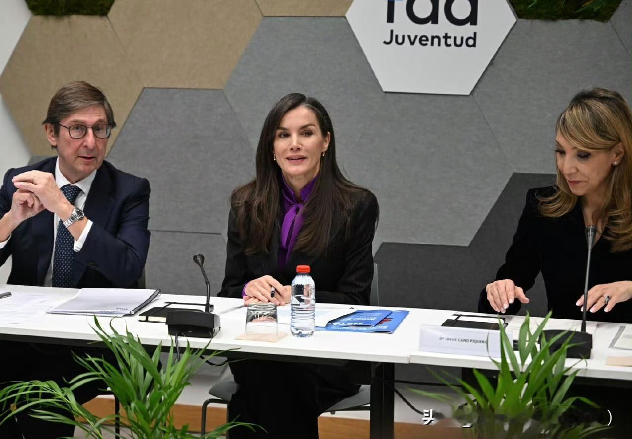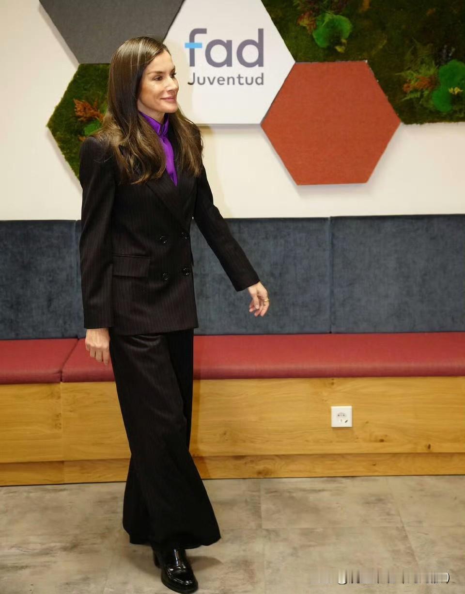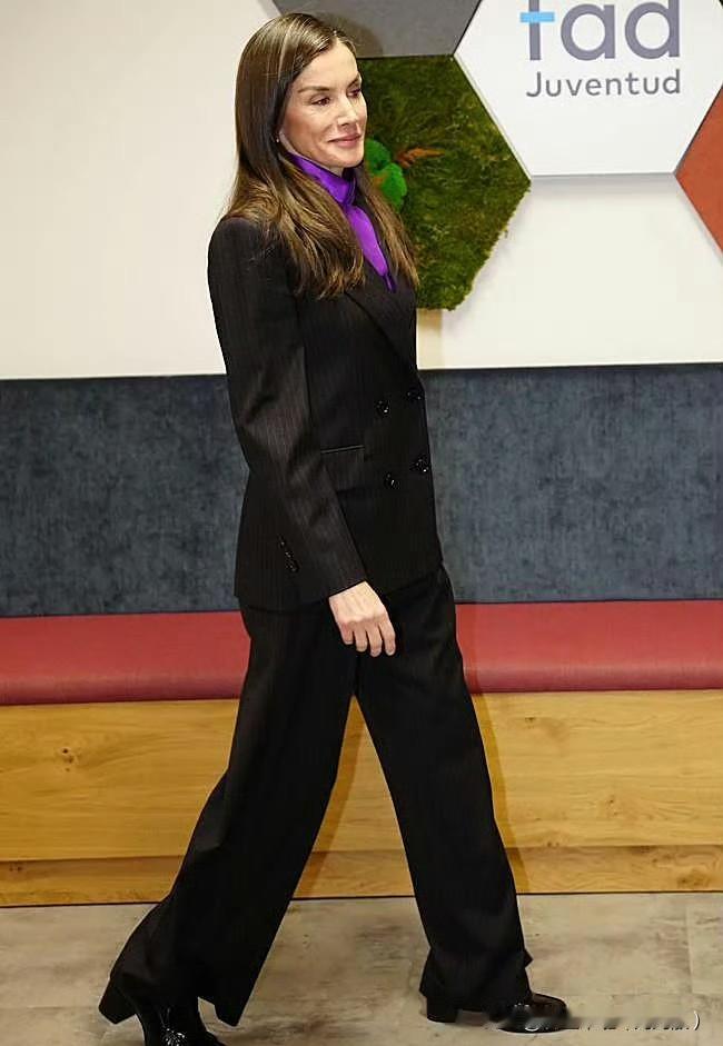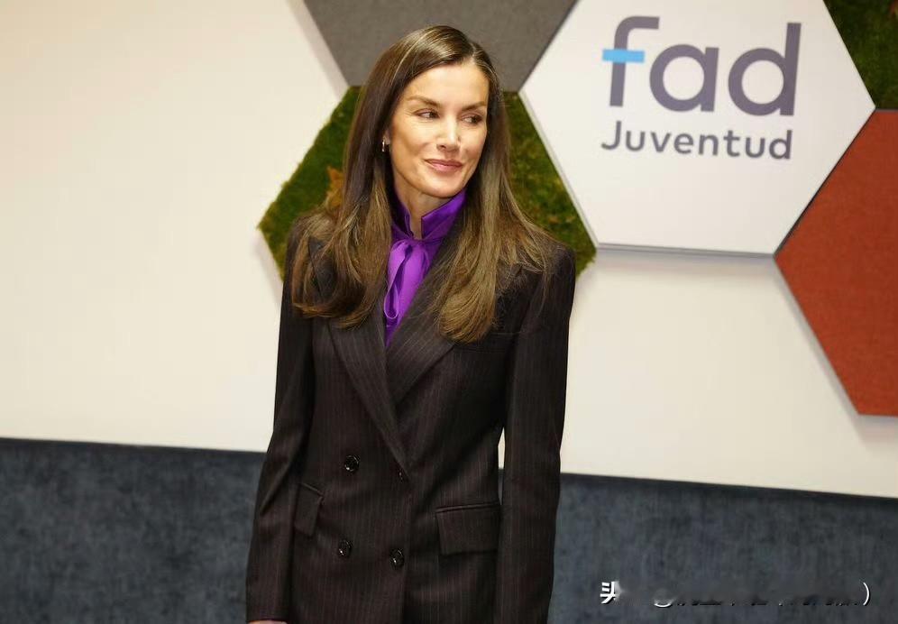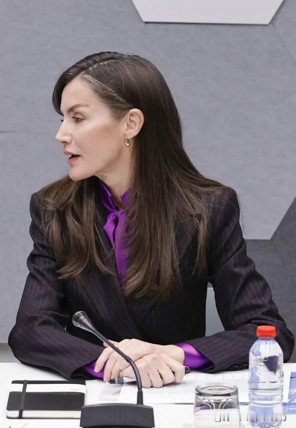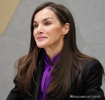 莱蒂齐亚王后的公务,参加基金会会议,黑色搭配紫色还是比较冒险的!