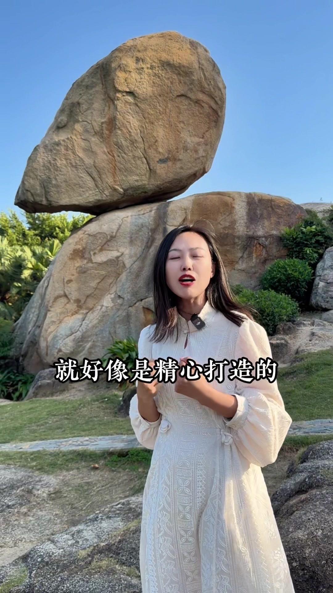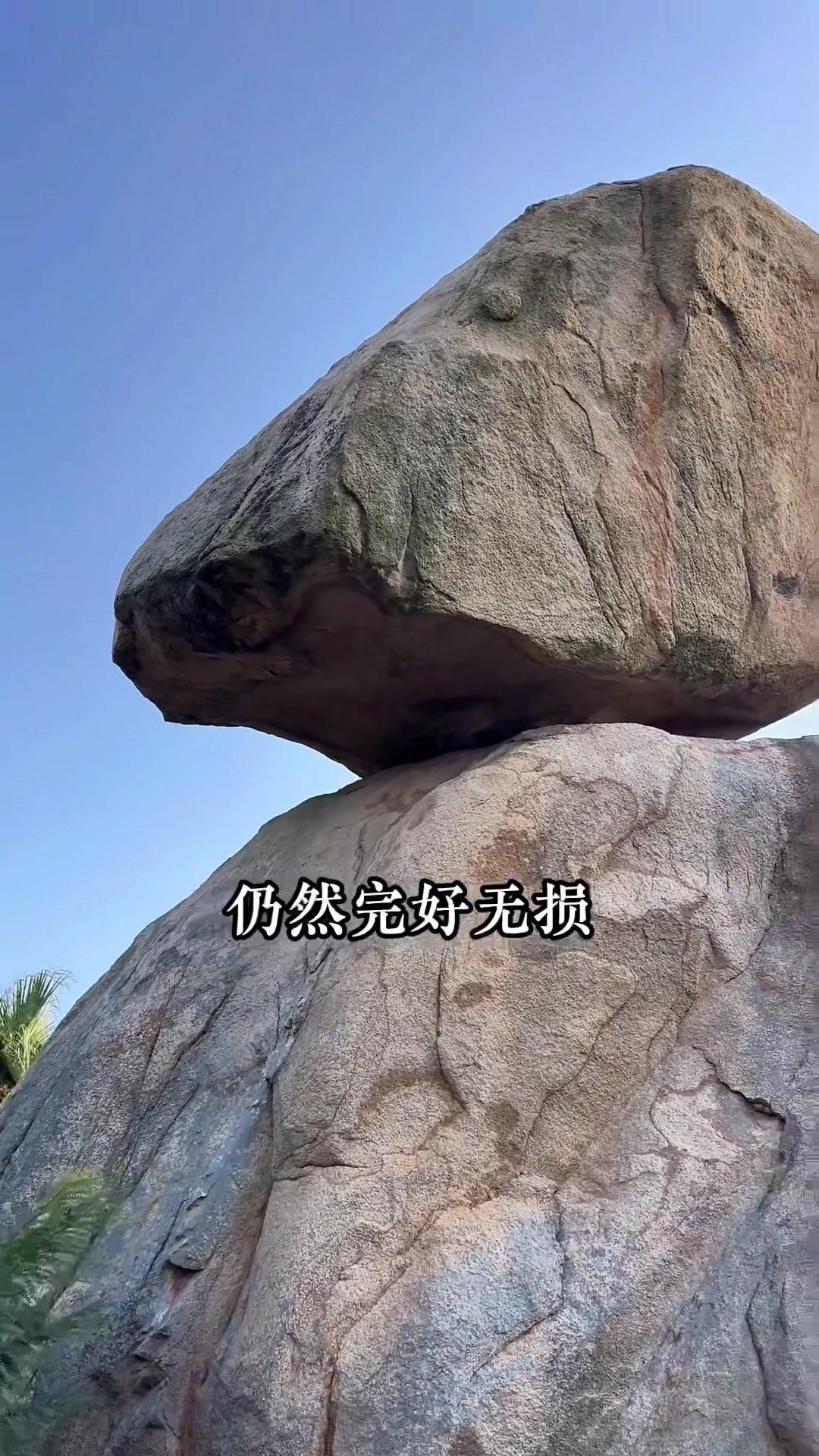 福建风动石,200吨重却能随风晃动屹立千年? 1️⃣日军曾用三根钢绳都拉不动 1938年日军发现这块奇石,想搬回军舰,用钢丝绳绑住巨石开足马力,结果三根钢绳接连拉断,巨石却纹丝不动,最后只能放弃 2️⃣1918年7.5级地震中安然无恙 周边山体崩塌山石滚落,它却完好无损稳稳立在原地,守护一方的神奇感拉满 3️⃣科学揭秘:重心精准+接触支点 巨石是完整花岗岩,经千万年风化,连接处形成极小接触支点,重心恰好落在十几平米接触点上,受力均匀像巨型不倒翁,既会晃又稳立,难怪是天下第一奇石
