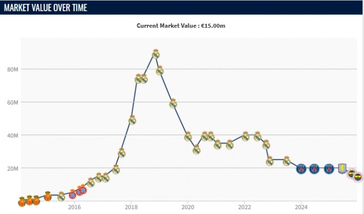 阿森西奥身价曲线↓