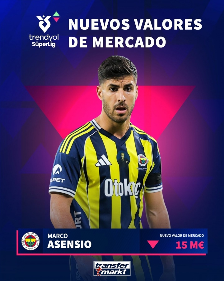 直播吧12月17日讯德转今日更新土超球员身价,29岁费内巴切前腰阿森西奥身价下跌至1500万欧。