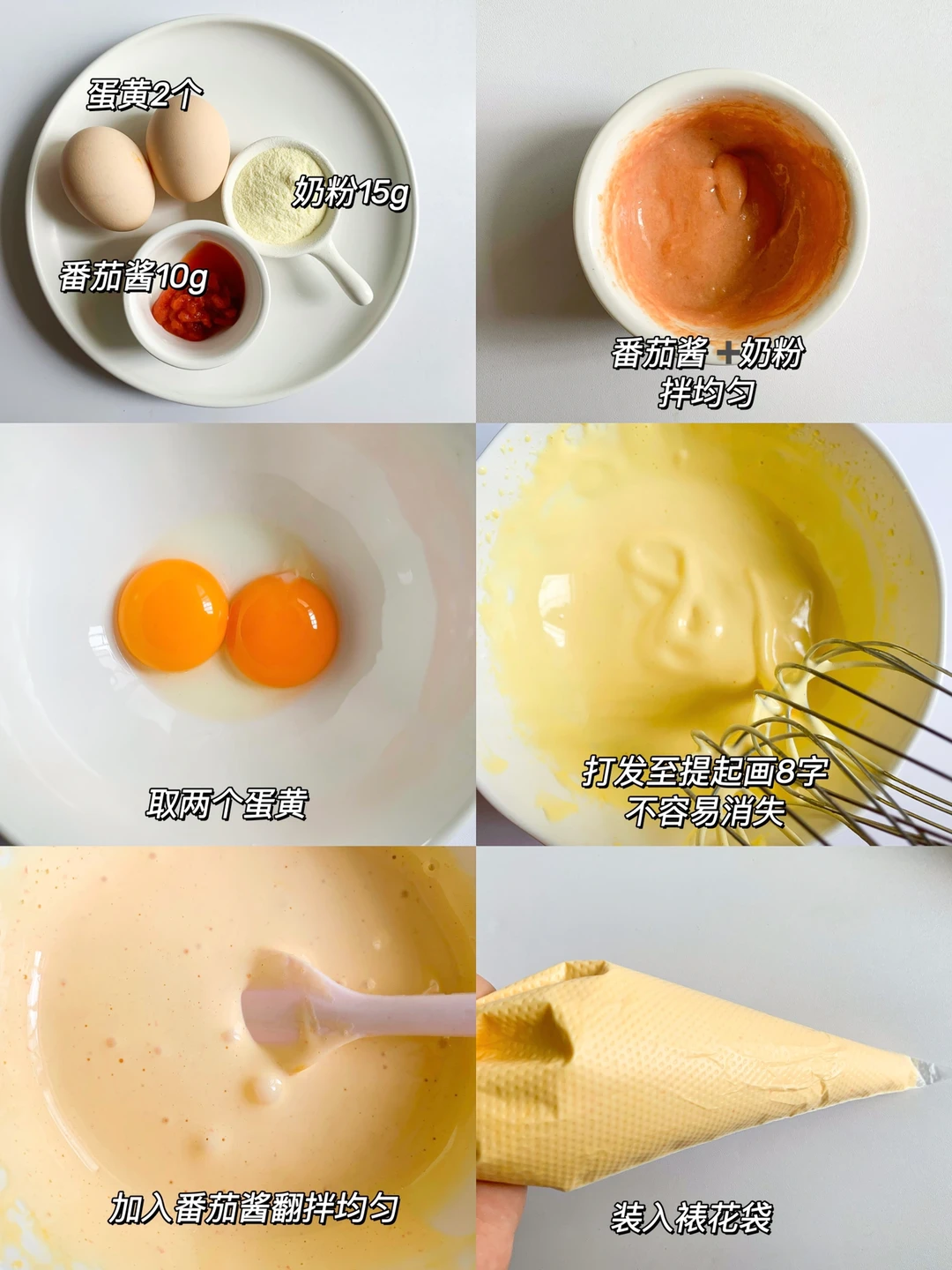 今天分享番茄口味的蛋黄溶豆的详细做法,一次成功,对蛋黄不过敏的宝宝都能安排起来啦,可以给宝宝当作手指食物[赞R]一口一个好吃到停不下来 🌟食材: 蛋黄2个 奶粉15克 番茄酱10克 . 🌟做法: 1⃣️番茄酱➕奶粉拌均匀 2⃣️ 蛋黄倒入打蛋盆中,打发至提起画8字不容易消失,倒入番茄酱翻拌均匀 3⃣️倒入裱花袋,挤在油纸上,烤箱90度烘烤40分钟 - 🌈每个烤箱脾气不同,按照自己的烤箱来调整烘烤时间和温度 🌈做好后密封保存,防止受潮,尽快吃完