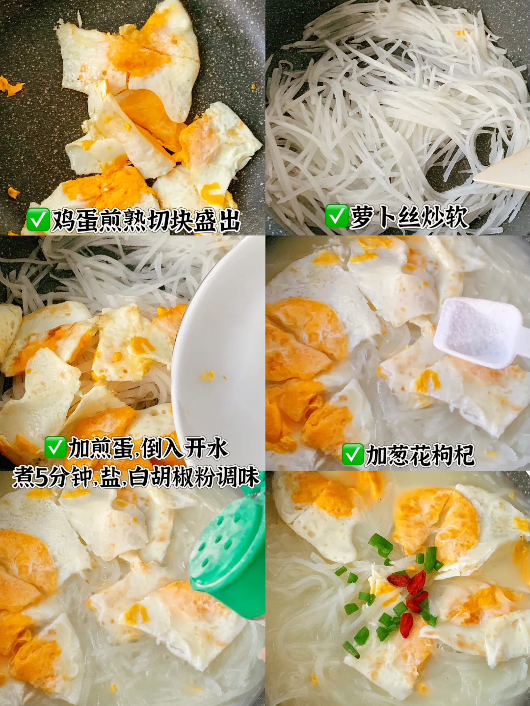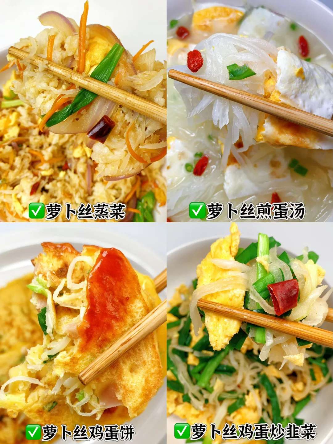 越吃越瘦的掉秤神器‼️减脂餐的终点🏁是家常菜,好吃又不胖~ ♨️白萝卜减脂餐来啦,今天分享白萝卜和鸡蛋的四种吃法 [私信R]萝卜丝蒸菜 ✅萝卜丝煎蛋汤 [私信R]萝卜丝鸡蛋饼 ✅萝卜丝鸡蛋炒韭菜 🫕做法见上图👆🏻 ✔️每天认识一种食物~白萝卜 16大卡/100g,润肺止咳,促进消化,增强免疫力,美容养颜,适宜人群:便秘,消化不liang者 ⚠️脾胃虚寒者,气虚者应少食 🔥搭配心机:高水分➕低GI=躺着都能燃烧的热量 🌟建议收藏啦!刷到就是提醒你该换食谱了~ ✔️你想看哪种搭配就