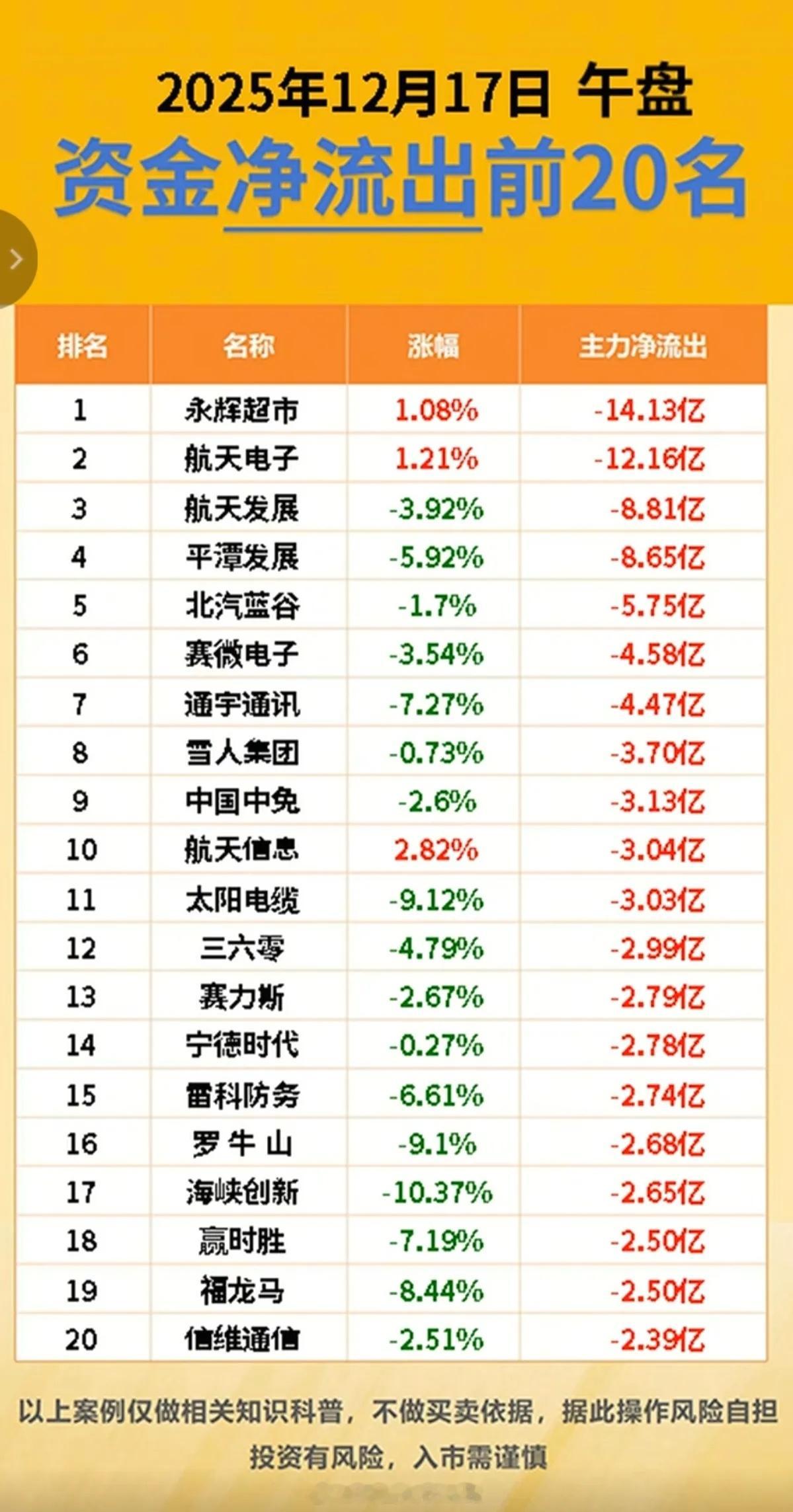 12.17周三 主力大资金 流向 TOP20!锂矿资源集体爆发,保险大金融,CPO共封装光学,食品加工制造,液冷服务器,预制菜,超级品牌等资金流入。自由贸易港,移动支付,电子化学品,智能电网,风电设备,多元金融,赛马,福建板块,特高压等资金流出较多