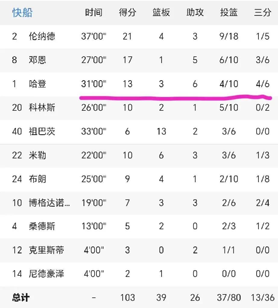 哈登最近确实拉胯。打灰熊那场,两分球一个没进,全场就拿了13分。这可不是我们认识的那个大胡子。 你说他为啥这样?我看就是累的加伤的。媒体报道他膝盖一直有伤,医生都让他少突破了。可教练还让他场均打将近37分钟,这谁受得了?尤其是第四节,他经常没劲了,正负值全队最低。 再说战术,他现在打得憋屈。在火箭他是绝对核心,球都在手里。现在快船有伦纳德有乔治,哈登球权少了一大截。你让他当个定点射手,这根本不是他的风格。防守端更累,快船内线不行,他还得经常去补防,满场跑。 球队现在战绩稀烂,但管理层好像还没死心。听说暂时不打算交易他,还指望这“三巨头”阵容能有点起色。最近赢步行者那场,哈登不主攻了,专心传了12个助攻,这算是个积极调整。 说到底,哈登的下滑是伤、累和角色别扭共同造成的。快船要是真想用好他,要么赶紧弄来个靠谱内线帮他减负,要么多给他球权。不然这么耗下去,对球队对他自己,都是双输。