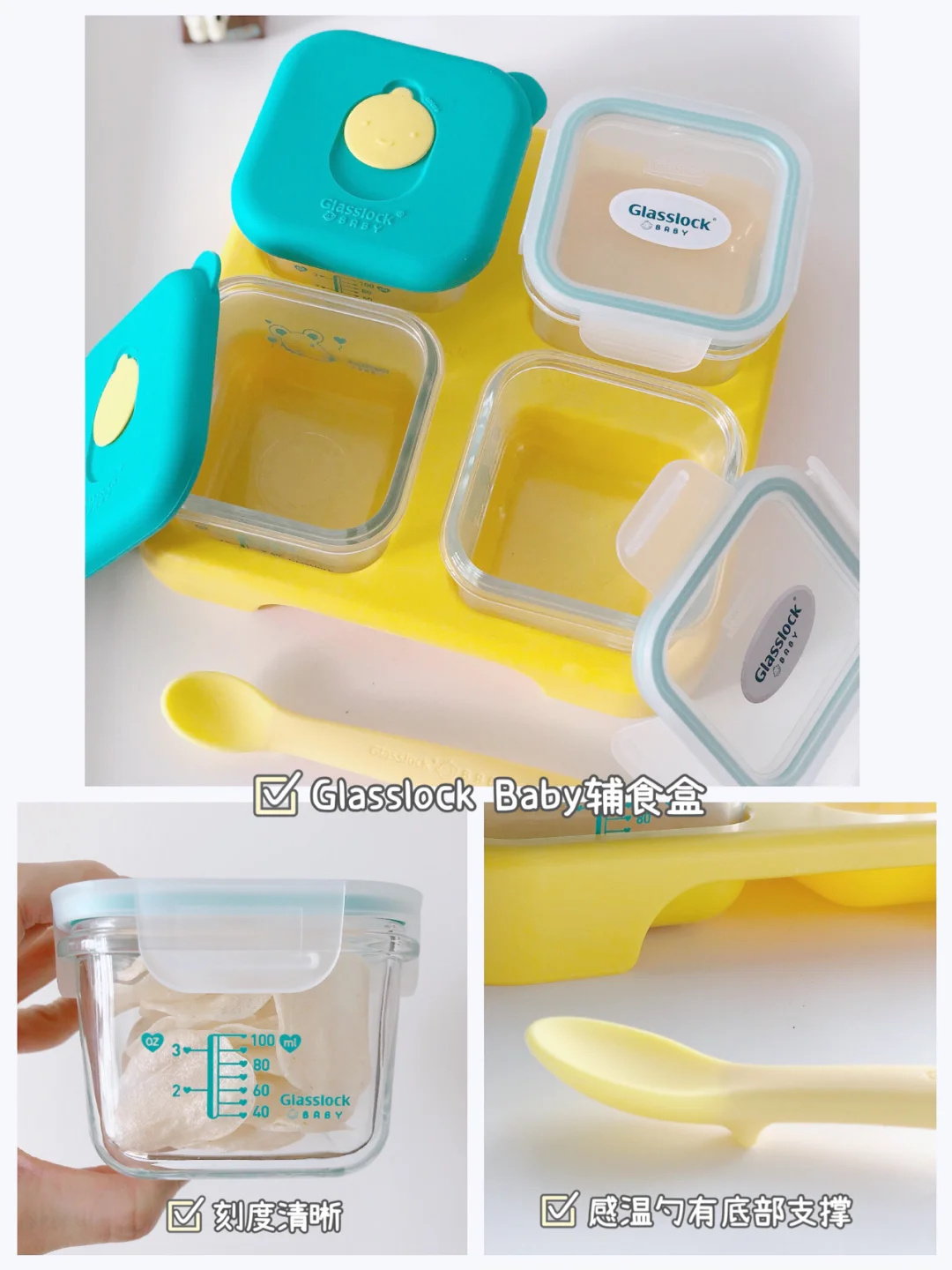 ❤️做零食做多的一次吃不掉的,建议装密封性好的辅食盒里保管,我用的的是glasslockbaby辅食盒,玻璃杯身有清晰的刻度线,玻璃是耐高温的,可入蒸锅和微波炉,而且其中两个盖子是有排气孔的,做蒸糕,蒸蛋羹省去了戳眼的麻烦。这款glasslock baby辅食盒简直太方便了。