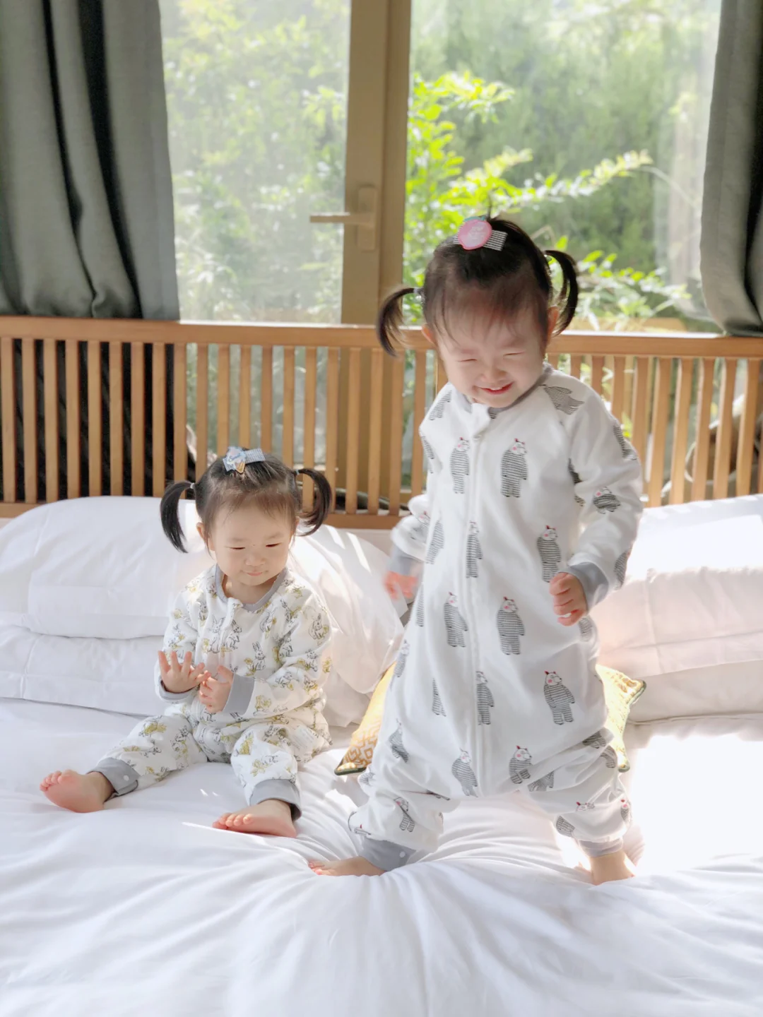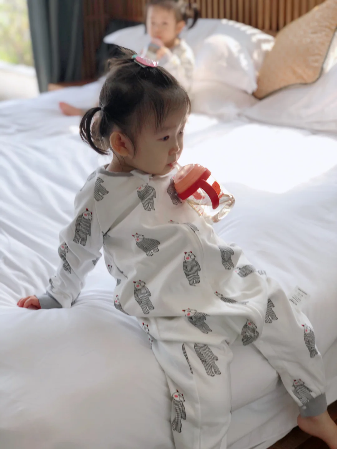 日常喝奶也是一样,妹妹可以安静坐那喝完,姐姐拿着奶瓶一边喝,一边挪动,能从床头挪到床尾几个轮回。哈哈[笑哭R]