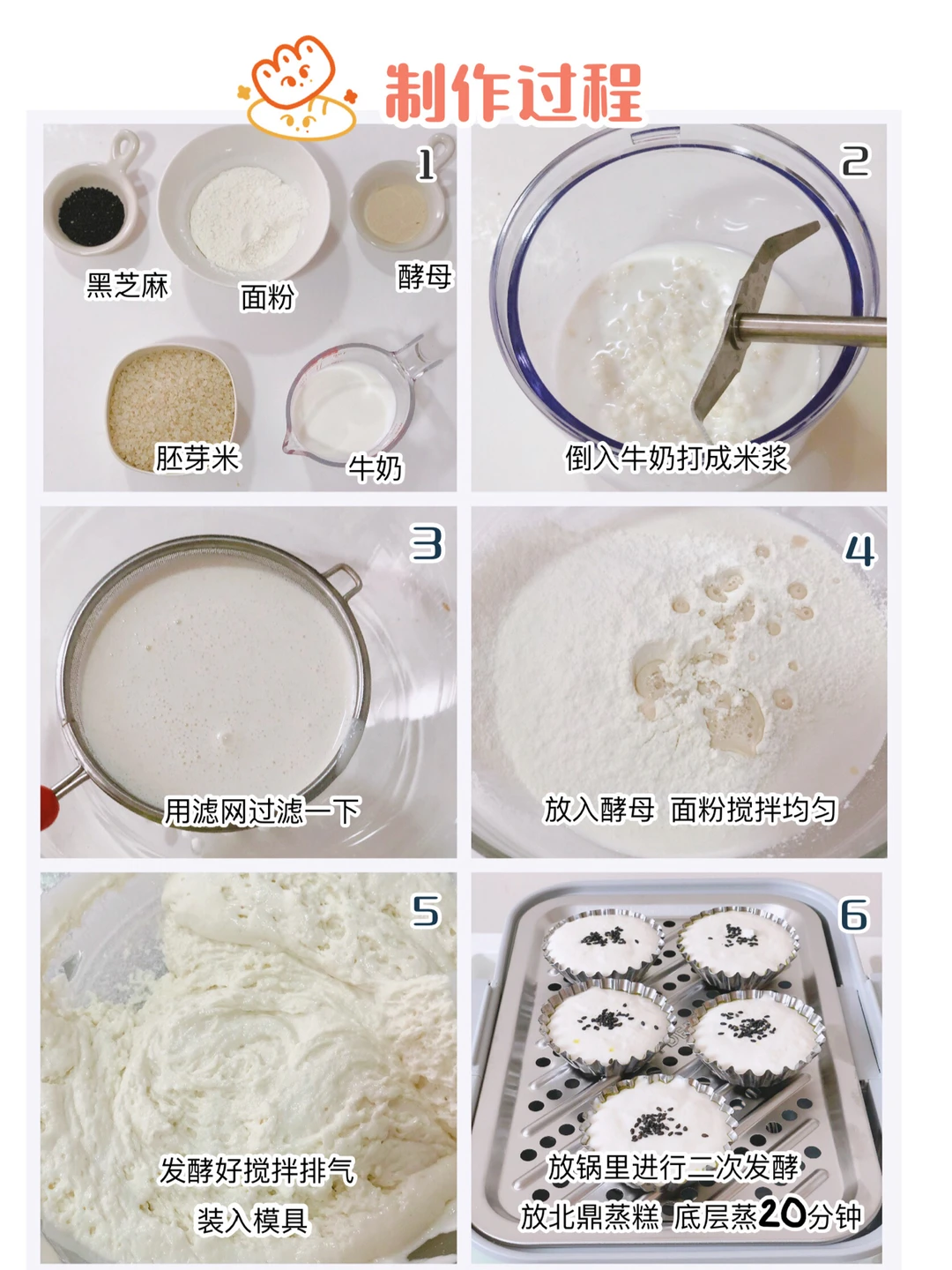 🔹大米提前一晚浸泡,早上控干水分备用。牛奶&大米放入料理机打成细腻的米浆,再用滤网过筛一下(做出来的口感会更细腻),酵母用一点温水化开,倒入米浆里,再筛入面粉,搅拌均匀。盖上保鲜膜进行发酵