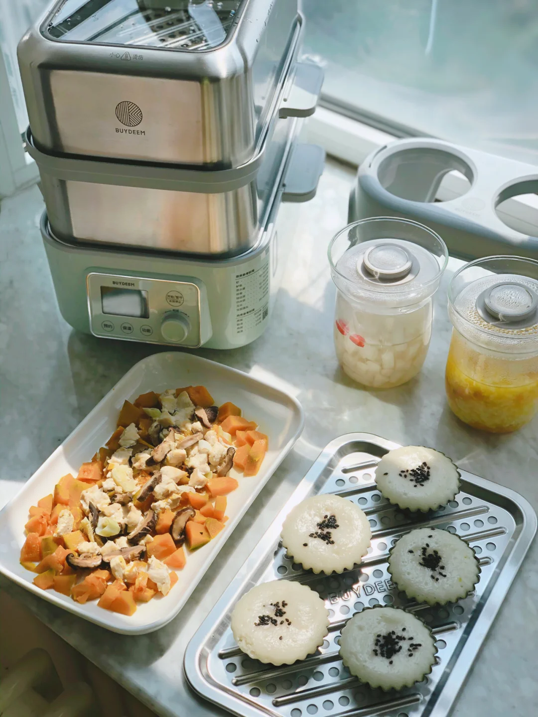 ❤️我用的神器:北鼎多功能二层蒸炖锅,可以上下两层同时蒸,也可以下层炖上层蒸,普通的蒸锅会有水溅到到处都是,而且食物直接蒸会有很多蒸汽水,蒸出来的食物会湿漉漉的,这个锅完全不会出现这种情况,而且只要设置好模式和时间,就可以完全不用管了,不用担心会有烧干锅的情况出现哦,还有它的预约功能也很赞,头一天晚上准备好早餐要吃的,预约好时间,早上就坐等开餐,简直太方便了👏