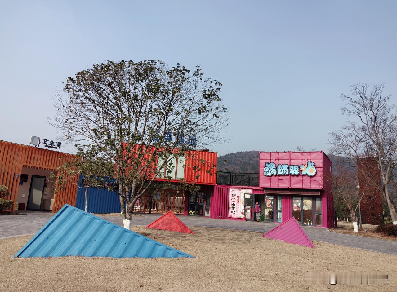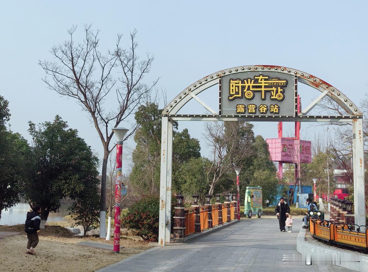 看这雪花飘飘,但明明是太阳当空照呀! 原来这是太湖湾露营谷正在人工打造冰雪大世界。几台机器在轰鸣着工作,吹出一朵朵雪花来! 几年不来我们这里的露营谷了,发现沿路多了轨道,小火车可以满场跑,不走路也可以领略露营谷的美景。 我们这里的露营谷,在常州环球动漫嬉戏谷对面,是一个将住宿露营、美食、游乐、休闲、运动跨界融合于一体的创新景区。 露营谷露营谷,顾名思义是露营的好地方。所以景区有小木屋和蘑菇房,更有一排排的房车,供人们入住选择。 占地近700亩,有房车宿营、生态游乐、农趣体验、拓展基地、格子吧街五大板块,是一个既可游玩享惬意,也可宿营微度假的户外休闲体验一站。