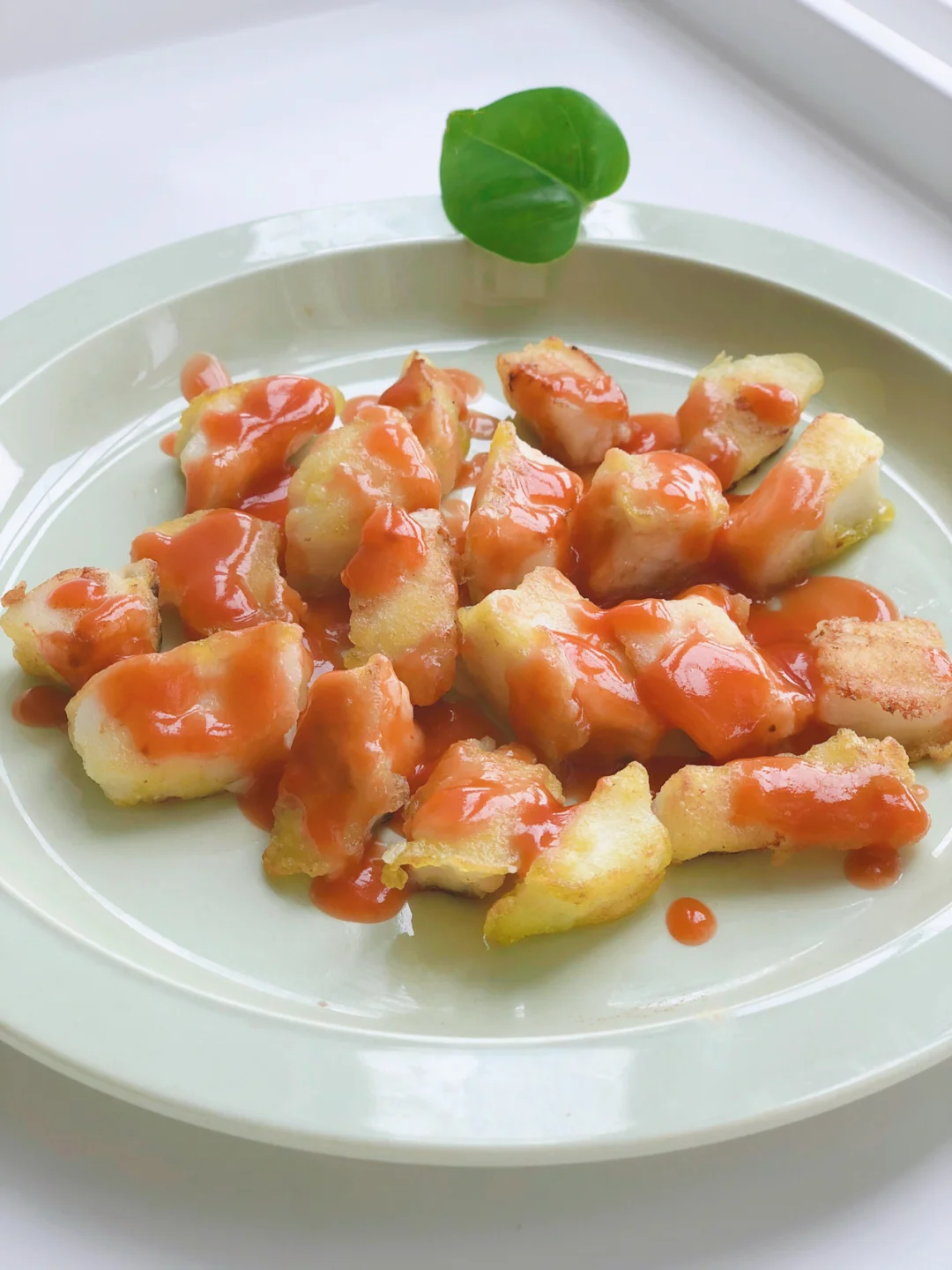 🎀准备材料:鳕鱼120g,番茄酱适量(我用的家常不锈钢勺2勺)