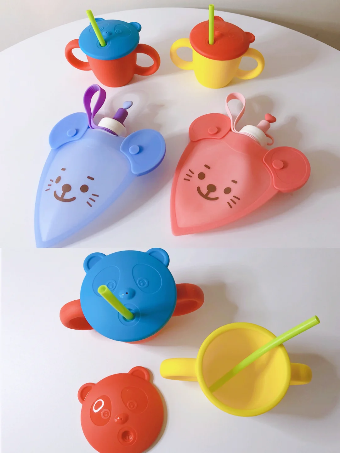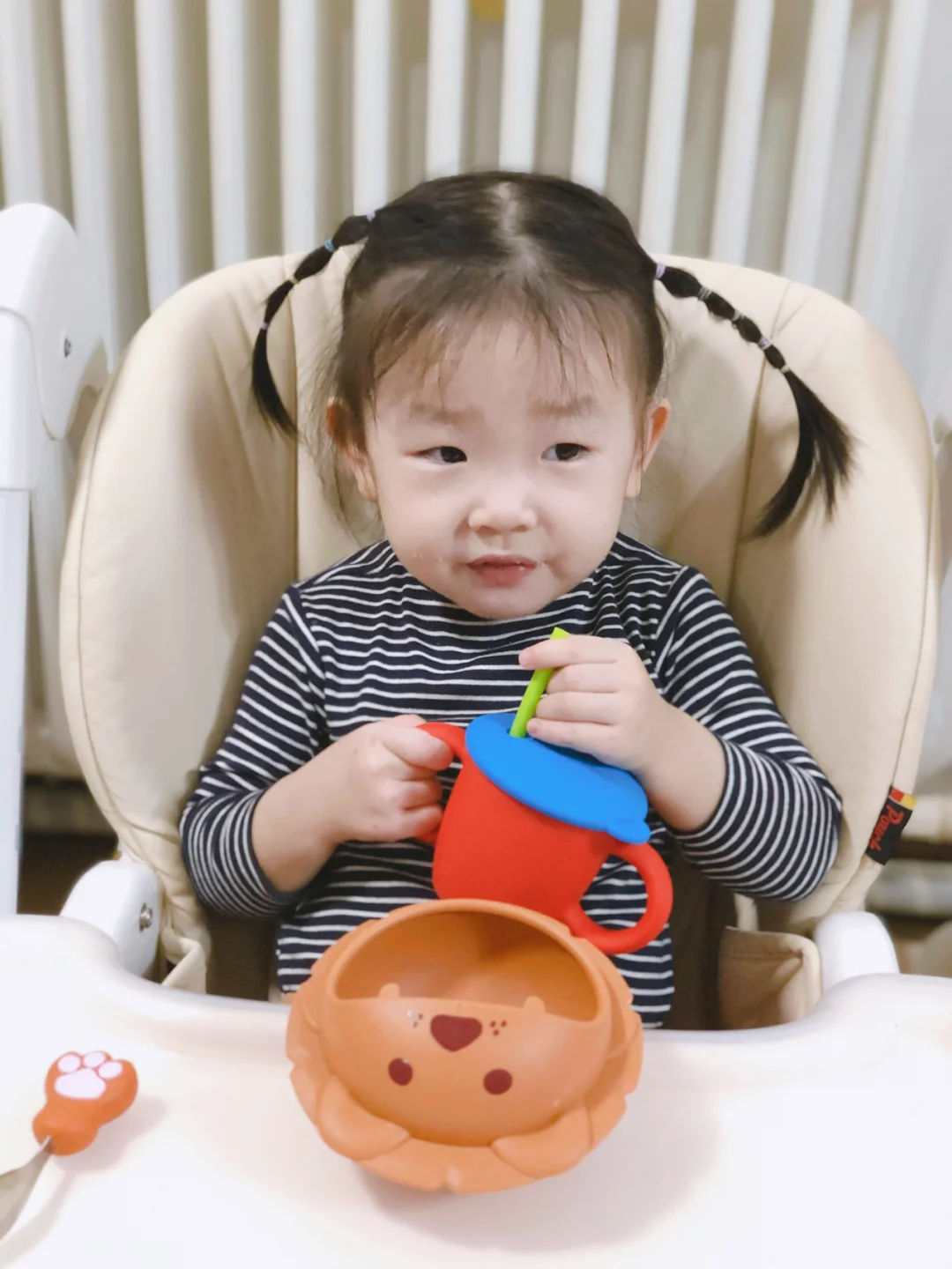 ❤️餐具:韩国思利满,入了最新款小老鼠造型的水袋,还有防漏水吸管杯,材质是铂金硅胶材质,耐高温可水煮消毒,水袋可折叠外出携带非常方便,吸管杯双手柄的设计,宝宝非常容易抓握,宝宝敲喜欢用[斜眼R]