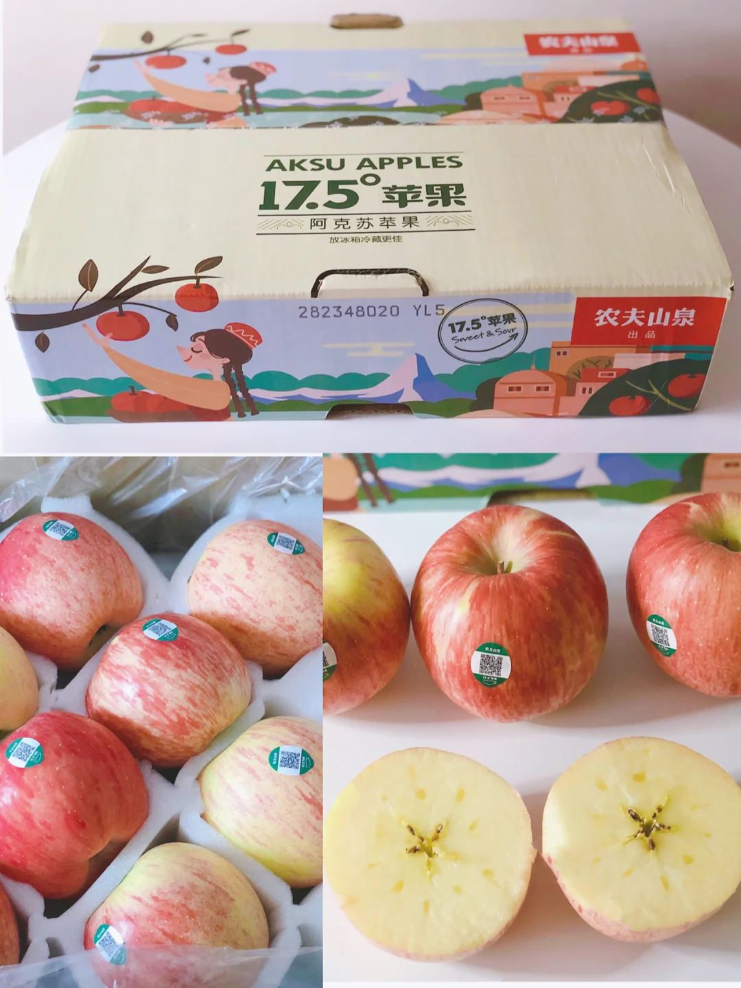 ❤️苹果我选的是农夫山泉17.5度阿克苏原产苹果,水分超足且甜,苹果的维生素、矿物质含量很高,宝宝6+以上就可以添加了,建议日常多给宝宝添加来吃