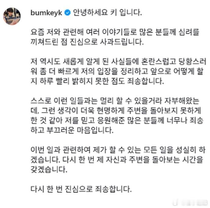 KEY承认非法注射 SHINee成员KEY已就其接受非法注射治疗一事进行说明,并