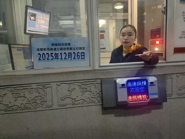 12月17日,记者在双流机场高速收费站看到,收费亭旁张贴告示:成都机场高速公路收费截止日期至2025年12月26日。随后,记者致电“成都高速”,工作人员明确回复表示公告属实,双流机场高速收费截止日期至2025年12月26日,以公告为准。