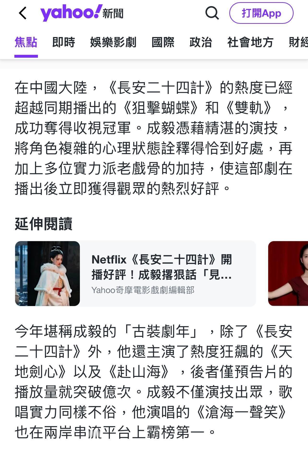 中国台湾媒体对长安二十四计的新闻报道,好作品值得更多人看到!