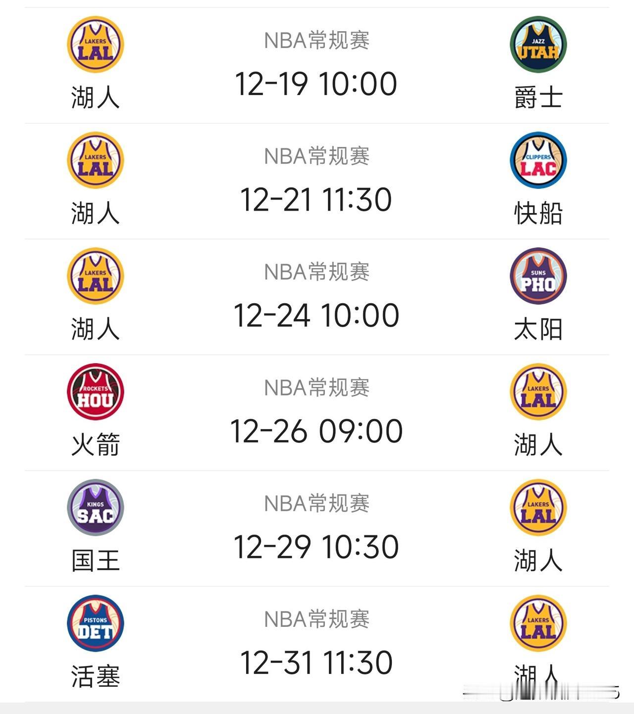 十二月份湖人还有6场比赛,3客3主(见图二),里夫斯预计还会缺席两场,能取得怎样