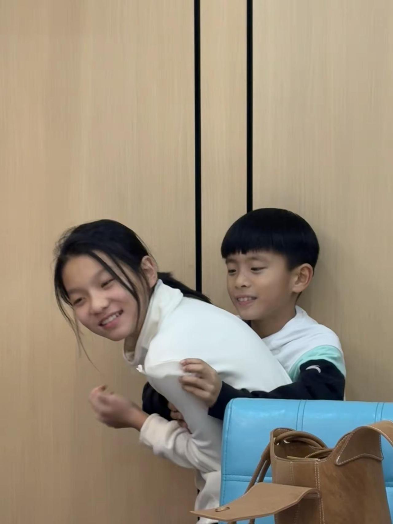 打弟弟要趁早你们说对不对?姐弟俩感情超好