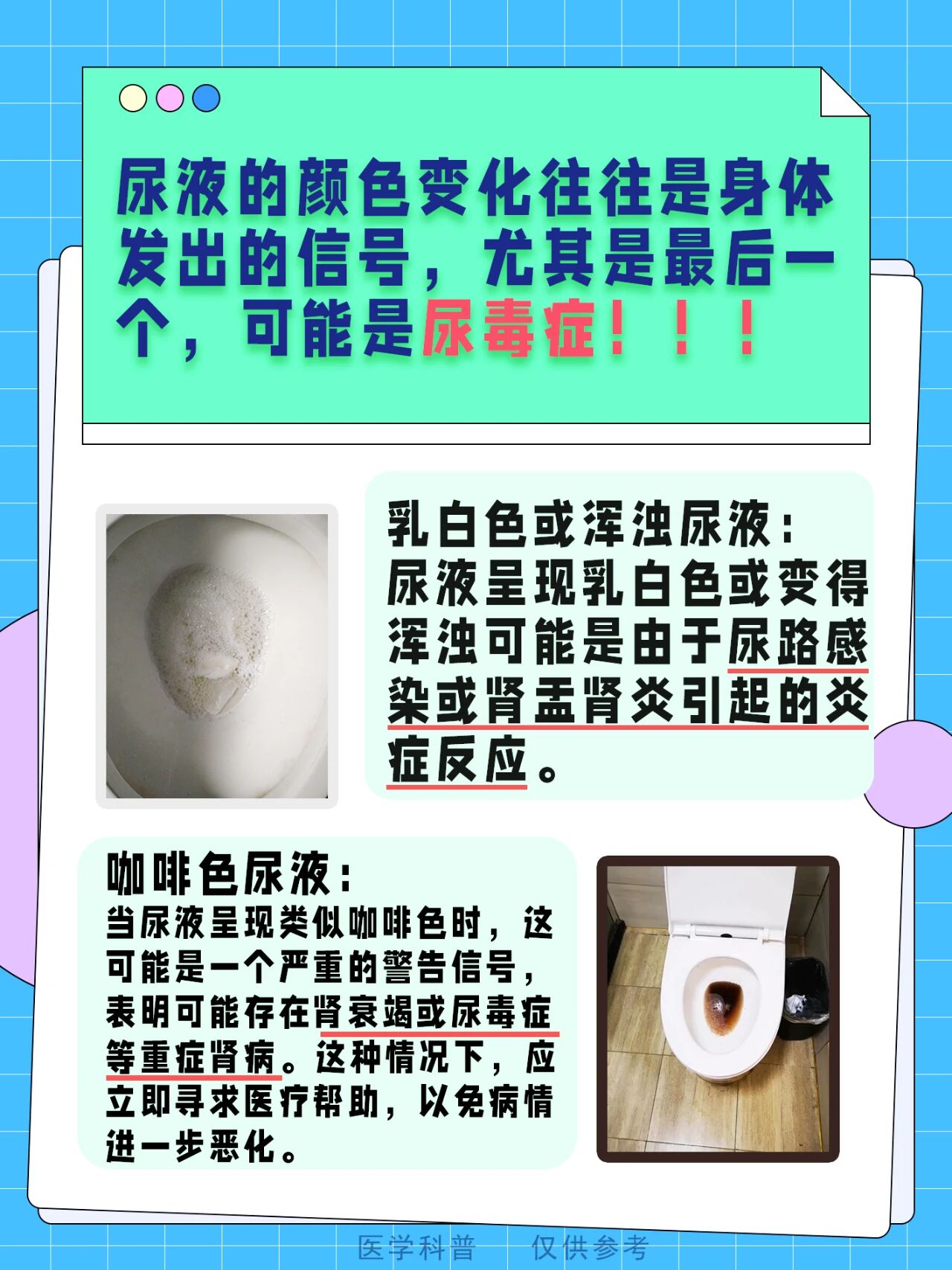肾病尿液颜色的变化,希望大家都是第一个!尿液颜色的变化常常是身体健康状况的重要信号。这些都可能是肾脏疾病的早期警示信号,甚至可能是尿毒症的迹象。一旦发现这些异常,应立即就医,以免病情恶化。