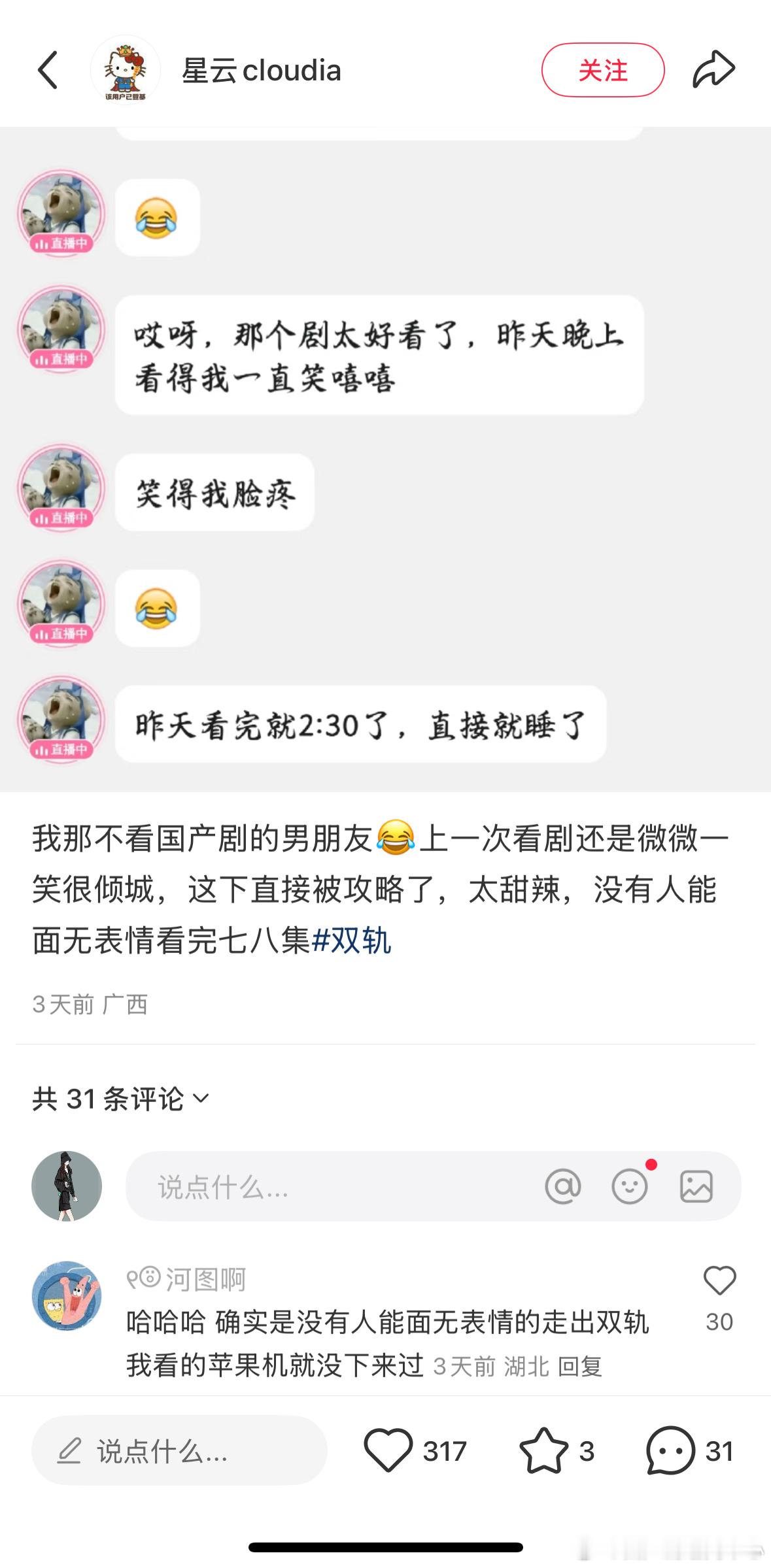 我发现男朋友背着我偷偷嗑 真的要被笑死!之前还说偶像剧都是小情小爱,结果看《双轨