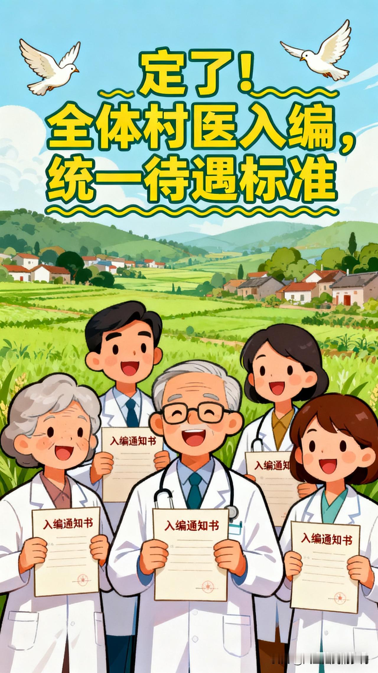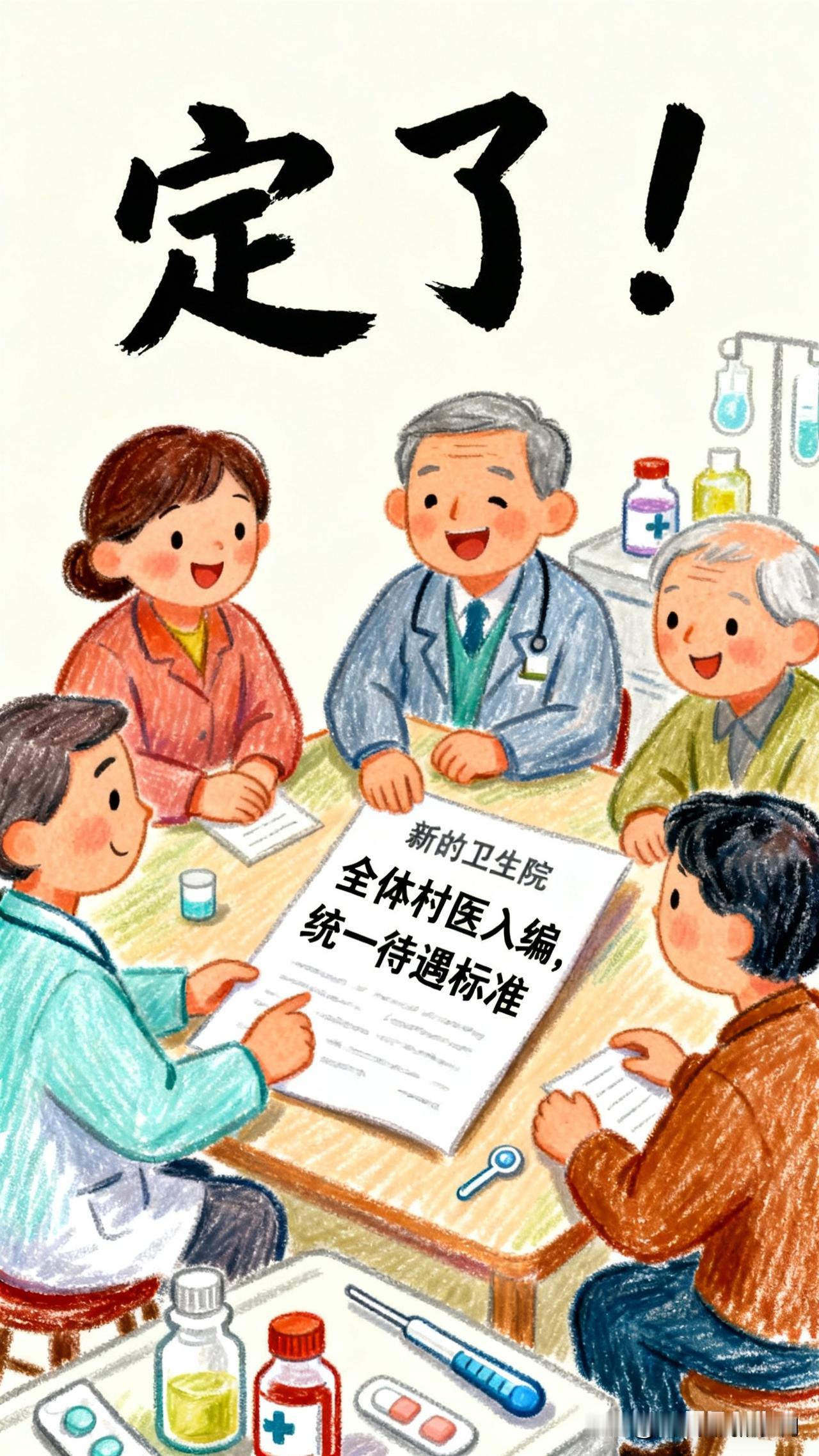定了!全体村医入编,统一待遇标准 当清晨的第一缕阳光落在山乡的土路上,当村卫生室的木门被第一双手推开,村医们的身影,早已成为这片土地上最温暖的坐标。如今,一则重磅消息,为这些默默扎根乡土的医者,送来最厚重的慰藉:全体村医入编,统一待遇标准,这不仅是一纸政策的落地,更是对无数村医半生坚守的最好回应。 村医,是乡土健康的第一道防线,他们背着药箱走过的山路,藏着村民们最踏实的安全感;他们记下的每一份病历,写着山乡最真实的健康温度。但长久以来,身份的模糊、待遇的参差,像一层薄雾,蒙在这些基层医者的前行路上。有的人拿着微薄的收入守着一方村民,有的人在职业的路口犹豫徘徊,这份扎根的勇气,需要更坚实的支撑。 而这次的入编与待遇统一,正是为这份支撑筑牢了根基。从此,村医们将拥有清晰的职业身份,不再是游离在编制外的“边缘人”;统一的待遇标准,让他们的付出能得到对等的回报,养老、保障的后顾之忧被一一消解。这是政策对基层医疗的托举,更是对“敬佑生命、救死扶伤”初心的回应——那些曾在深夜翻山越岭出诊的脚步,那些曾在寒冬守着卫生室取暖的日夜,终于迎来了应有的荣光。 这不仅仅是村医群体的喜事,更是整个乡村医疗的新起点。当村医们的职业归属感越来越强,就会有更多新鲜的力量愿意扎根乡土,乡村卫生室的桌子上,会摆上更先进的医疗设备,村民们的家门口,能享受到更规范的医疗服务。这份改变,会顺着山路,淌进每一个乡村的烟火里,变成老人更安稳的睡眠,变成孩子更健康的笑脸。 山乡的风,终于吹来了带着暖意的消息,那些曾默默发光的村医,终于可以站在更明亮的地方,继续守护这片他们热爱的土地。而这份守护,也会因为这份政策的温度,变得更长久,更坚定。 备选方向1: 《定了!村医入编,把健康的根扎得更深》 侧重描写村医入编后,对乡村医疗体系的长远影响,从医疗资源的下沉、乡村健康意识的提升等角度展开,用更宏观的视角,展现政策的深层价值。 备选方向2: 《一纸入编令,暖了山乡医者心》 侧重讲述村医的个体故事,用具体的人物与细节,比如一位从业三十年的老村医得知消息时的反应,年轻村医因此坚定的职业选择,以小见大,传递政策的温度。 备选方向3: 《从“守路人”到“同行者”:村医入编的时代意义》 侧重分析政策背后的时代逻辑,从乡村振兴的整体布局、基层医疗的补短板等角度,解读村医入编是乡村发展的必然一步,提升内容。