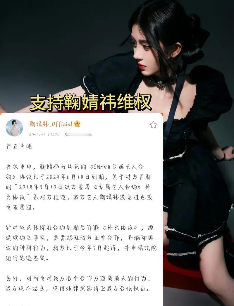 2025年12月18日,丝芭传媒发“最后告知”,指控鞠婧祎及其关联人涂某某涉嫌严重经济犯罪,将择日全网公开实名举报。此前双方因合约期限起纠纷,鞠婧祎方称2024年6月已解约、控诉公司伪造协议,丝芭则晒笔迹鉴定报告否认,还曝光已向鞠婧祎支付税前超1.39亿元,双方各执一词,纠纷持续升级。芭丝传媒 丝芭文化