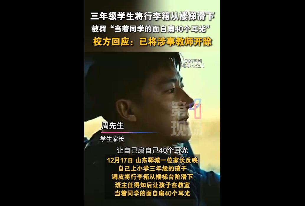 山东郓城熙昕外国语学校三年级学生因推落行李箱,被班主任要求当众自扇 40 耳光,致其恐惧辍学。 校方承认惩戒失当,开除涉事教师并承诺心理疏导,事件引发对惩戒边界与师德的热议。 从学生行为来看,推落行李箱确有安全隐患,但三年级孩子对 “危险” 的认知尚模糊,更需要基于教育目的的引导而非羞辱。 教育部 2021 年实施的《中小学教育惩戒规则 (试行)》早已明确,惩戒核心是 “育人” 而非施压,像书面检讨、课堂内短时站立等方式,既符合 “与过错程度相适应” 的原则,也能达到警示效果,可涉事教师却选择了最具伤害性的方式。 这种行为绝非 “惩戒”,而是触碰法律红线的体罚。 《未成年人保护法》明令禁止体罚,教育部更将 “击打、羞辱学生” 列为绝对禁止的七类行为之一。 更可怕的是心理伤害 —— 教育心理学人士指出,当众自扇耳光可能导致创伤后应激障碍,那些围观的目光与耳光声,会彻底摧毁孩子的自尊心,甚至让其对学校产生终身恐惧,这种伤害远非 “心理疏导” 就能轻易弥合。 事件暴露出的师德漏洞更值得警惕。 类似宁波教师让学生互扇耳光等案例频发,说明部分教师既缺乏科学教育手段,也对惩戒边界认知模糊,背后是师德培训流于形式、监督机制缺位的深层问题。 校方开除教师虽显 “零容忍”,但更需落实长效心理干预与师德考核 —— 将师德表现与职称评定挂钩、建立常态化巡查制度,才能让 “引导代替惩罚” 真正落地。 毕竟,教育的温度,藏在对孩子尊严的守护里,而非耳光的响亮中。