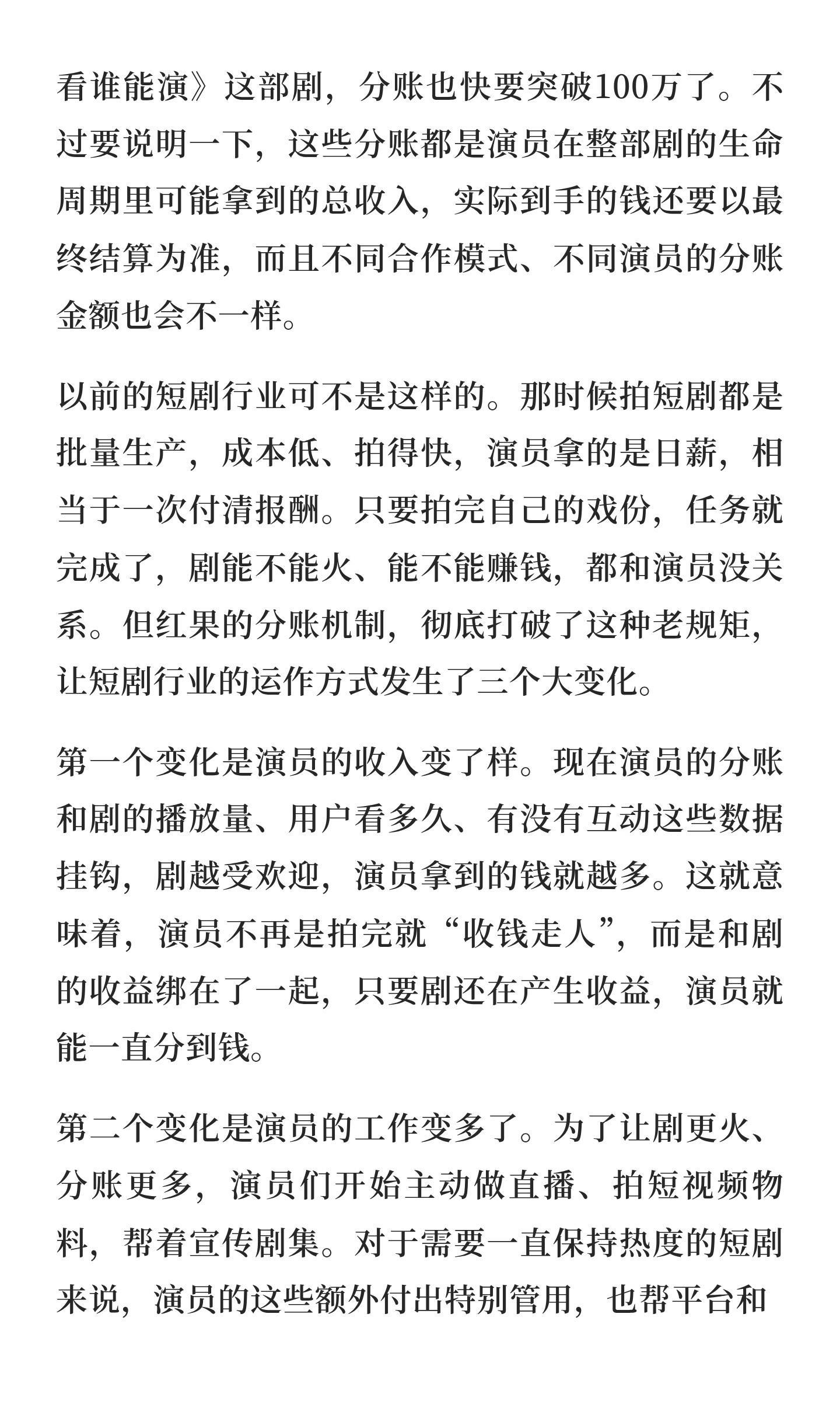三位演员分账超百万!红果分账制让短剧行业