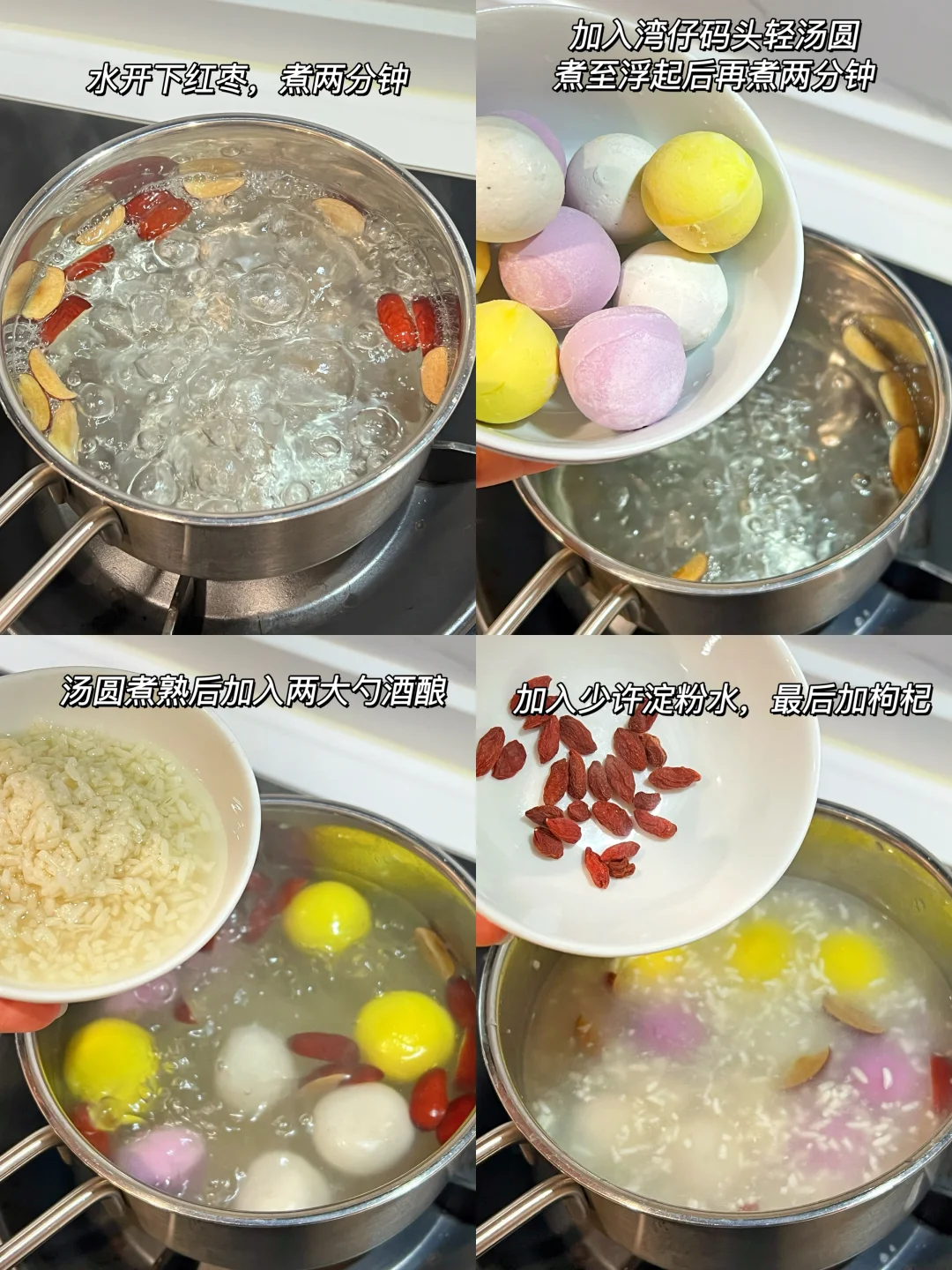 3️⃣加酒酿,淀粉水,枸杞,煮开即可