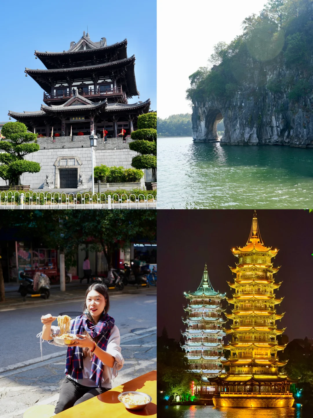 ②路线:象鼻山-日月双塔-正阳路步行街-东西巷、逍遥楼、靖江王府-榕杉湖(市区打卡点还有很多,可灵活加游,都不远,共享车/打车都方便)
