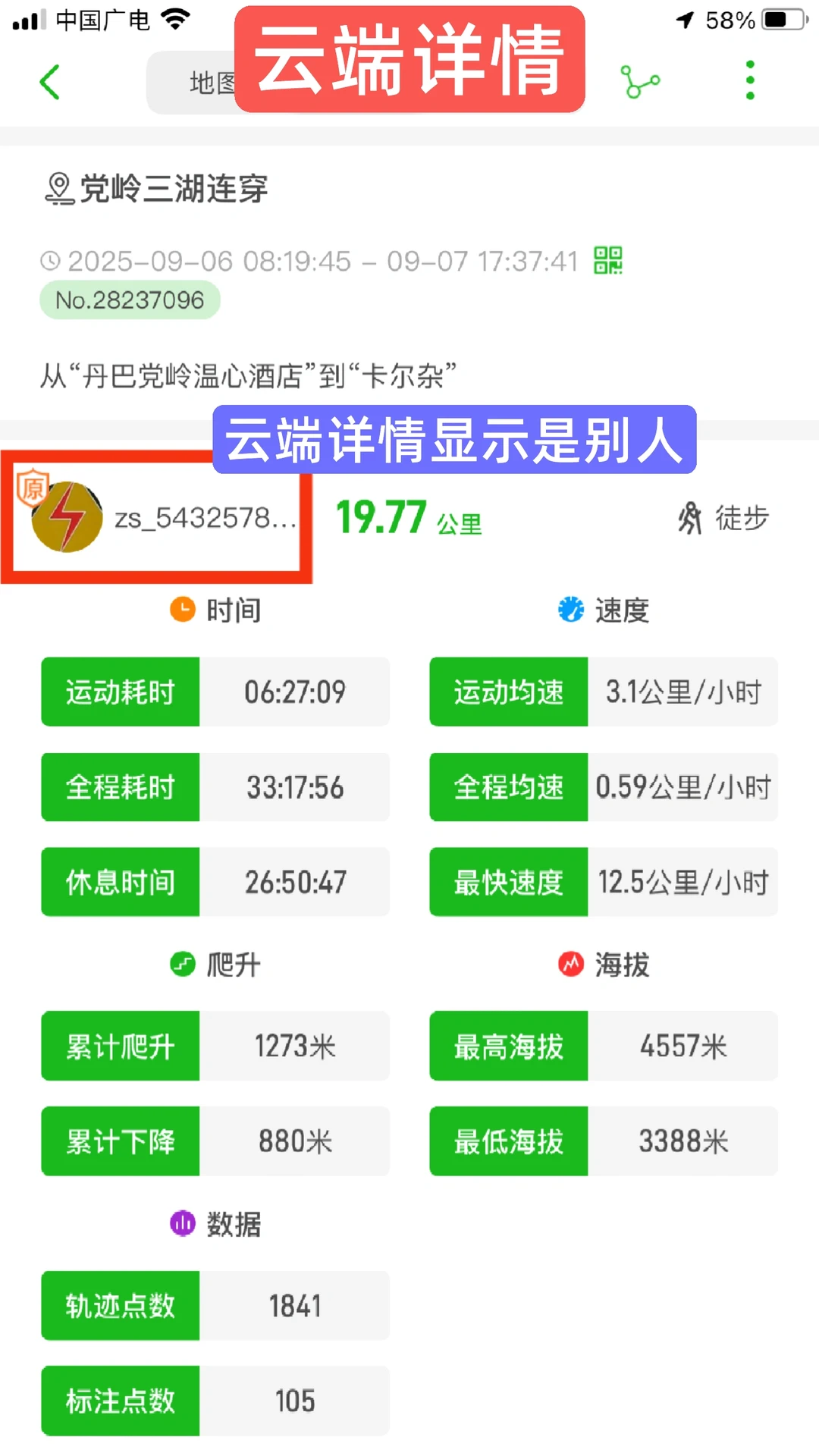 徒步轨迹被偷了,作者变成了别人