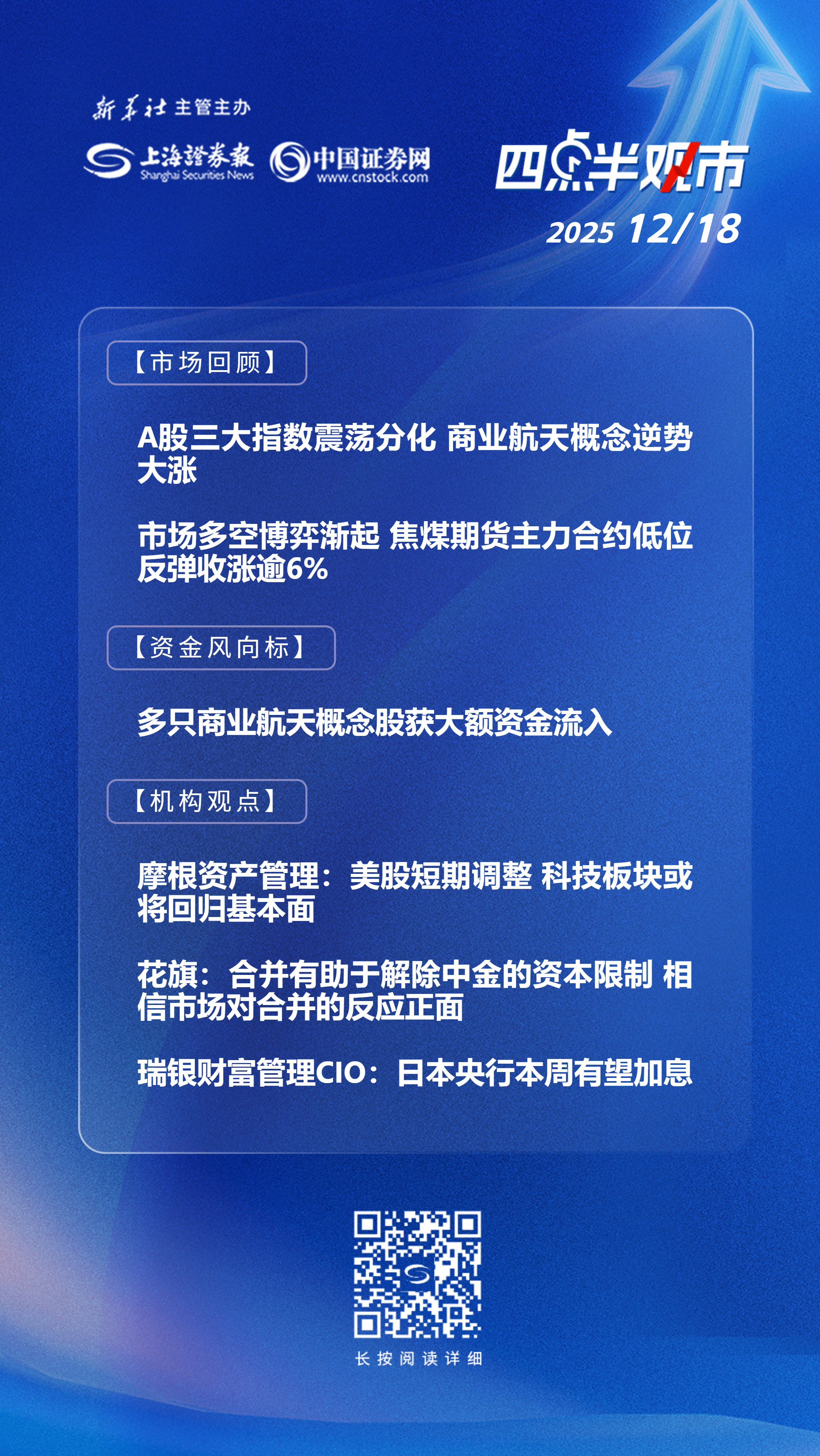 12月18日,A股三大指数震荡分化,沪指低开后回升,创业板指低开低走跌超2%。截至收盘,上证指数报3876.37点,涨0.16%;深证成指报13053.97点,跌1.29%;创业板指报3107.06点,跌2.17%。沪深北三市全天成交16768亿元。盘面上,个股涨多跌少,全市场超2800只个股上涨。商业航天全线爆发,星辰科技、盛洋科技、顺灏股份等多股涨停。