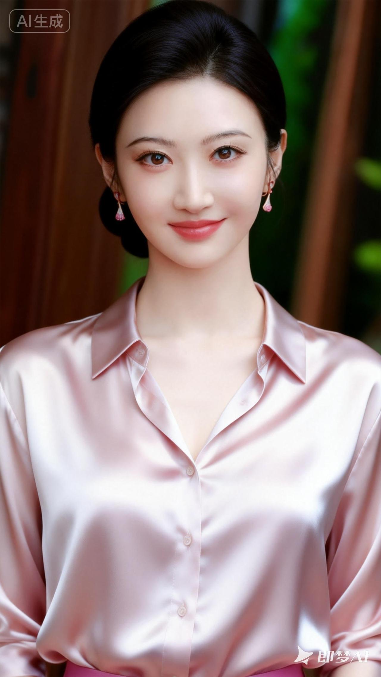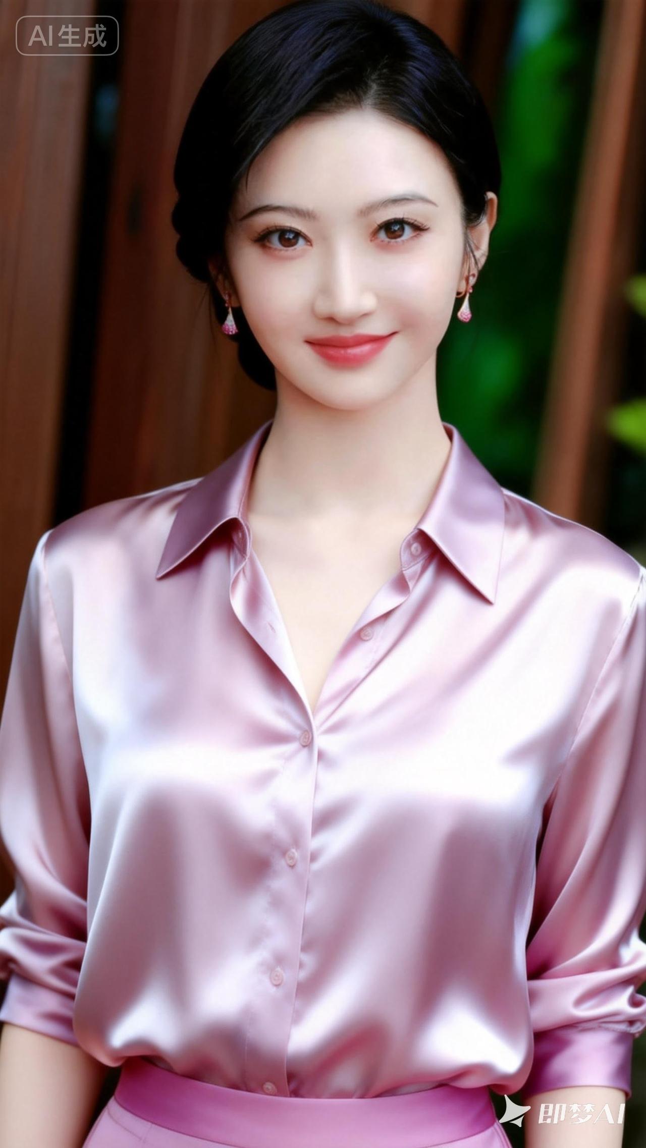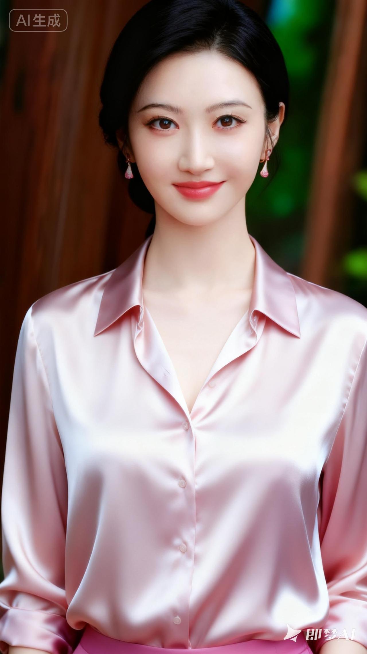 温柔优雅的粉色衬衫,甜美笑容,气质满分!