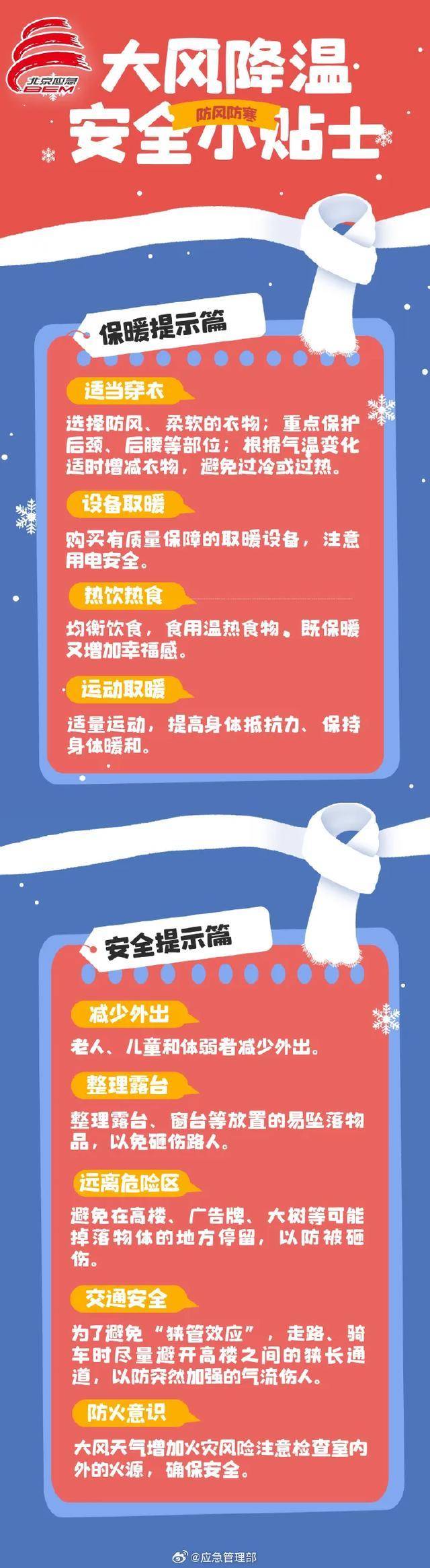 1.关注明天晚上开始大风、降温、降雨天气过程对能源保供、人体健康、水陆交通、户外设施、农业生产、城市安全运行等的影响。建议提前做好户外设施防风加固,敏感人群需加强健康防护。