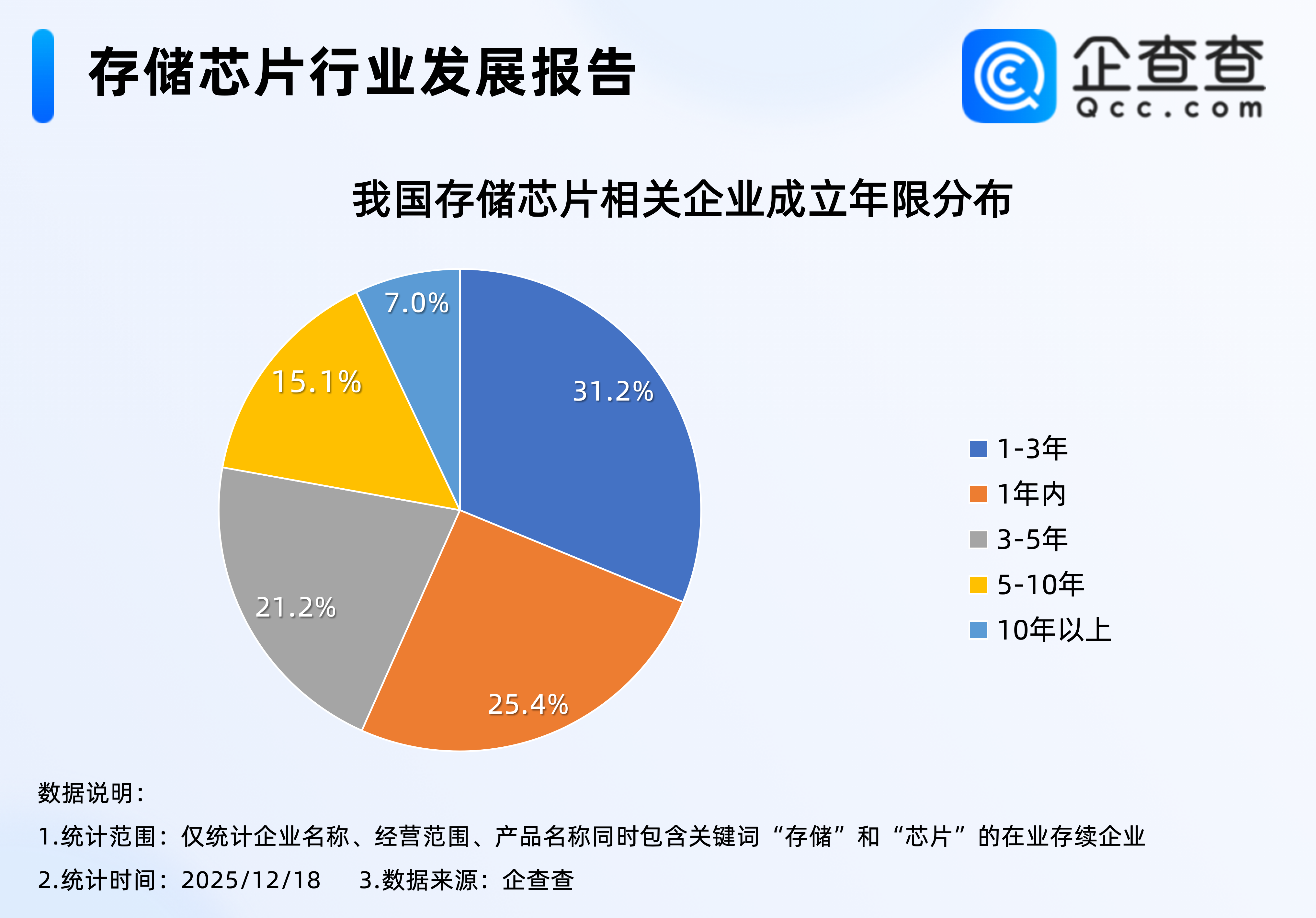 企查查数据显示,截至12月17日,我国现存4.5万家存储芯片相关企业,其中成立于1至3年之间的企业占比31.2%,成立于1年内的企业占比25.4%,综合来看,成立于近三年的企业合计占比超56%。