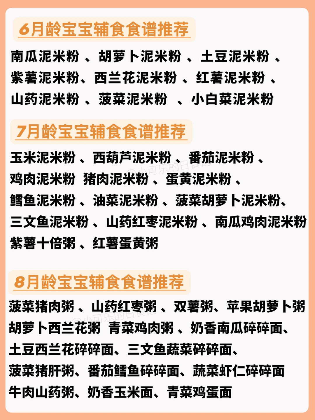 6月龄的宝宝就可以添加辅食了!今天跟大家分享下 6-12月龄宝宝的一些辅食食谱和详细做法,希望整理的资料对你们有帮助,新手妈妈们收藏哦[飞吻R]