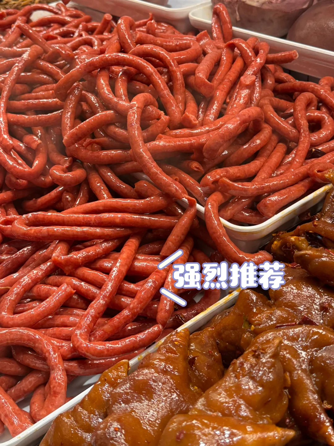 位于熟食区,有各种卤味肉制品,承重计费。