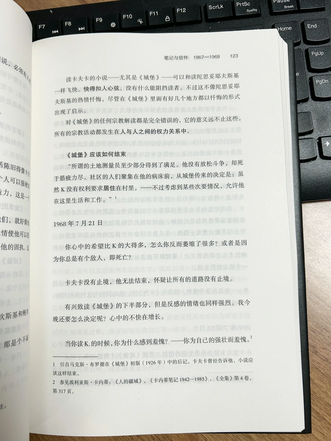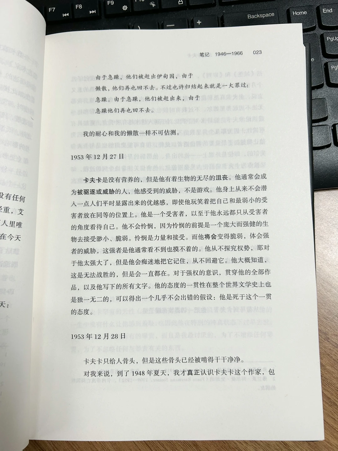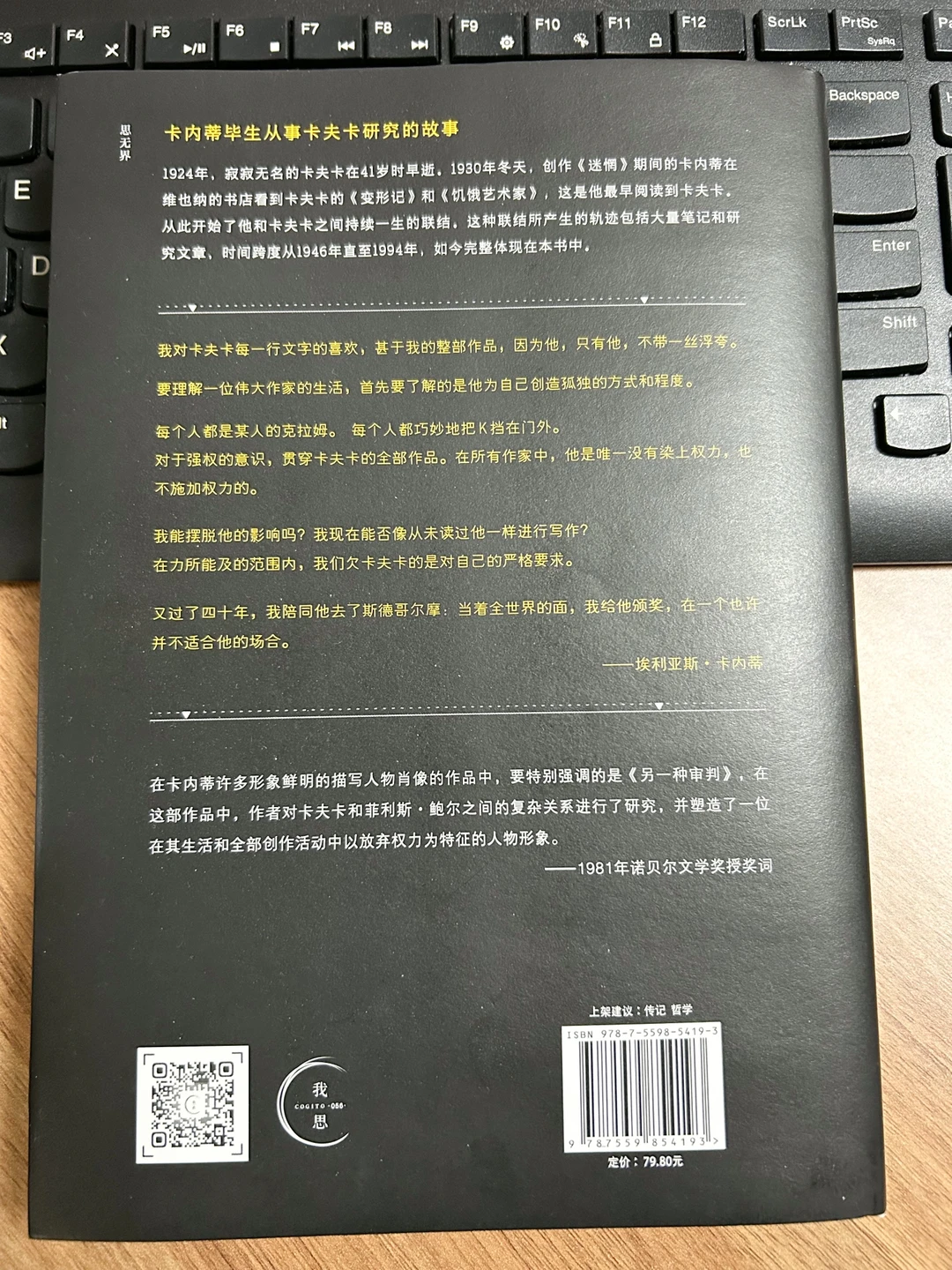 🌸这是一本有关于卡夫卡的研究。卡内蒂的卡夫卡笔记试图将卡夫卡的自我认知过程应用于他自己,从而释放自己的创作过程:“无法想象的是,他的审判不会在我心中激发出自己的。”卡内蒂按照自己其他笔记的方式,对卡夫卡笔记中的条目细致地标注了日期,从而使它们至少具有日记的形式。继普鲁斯特、乔伊斯和卡夫卡之后-他称他们是20世纪“最重要和最有影响力的”三位作家-卡内蒂也“深深执着于日记这种形式”。