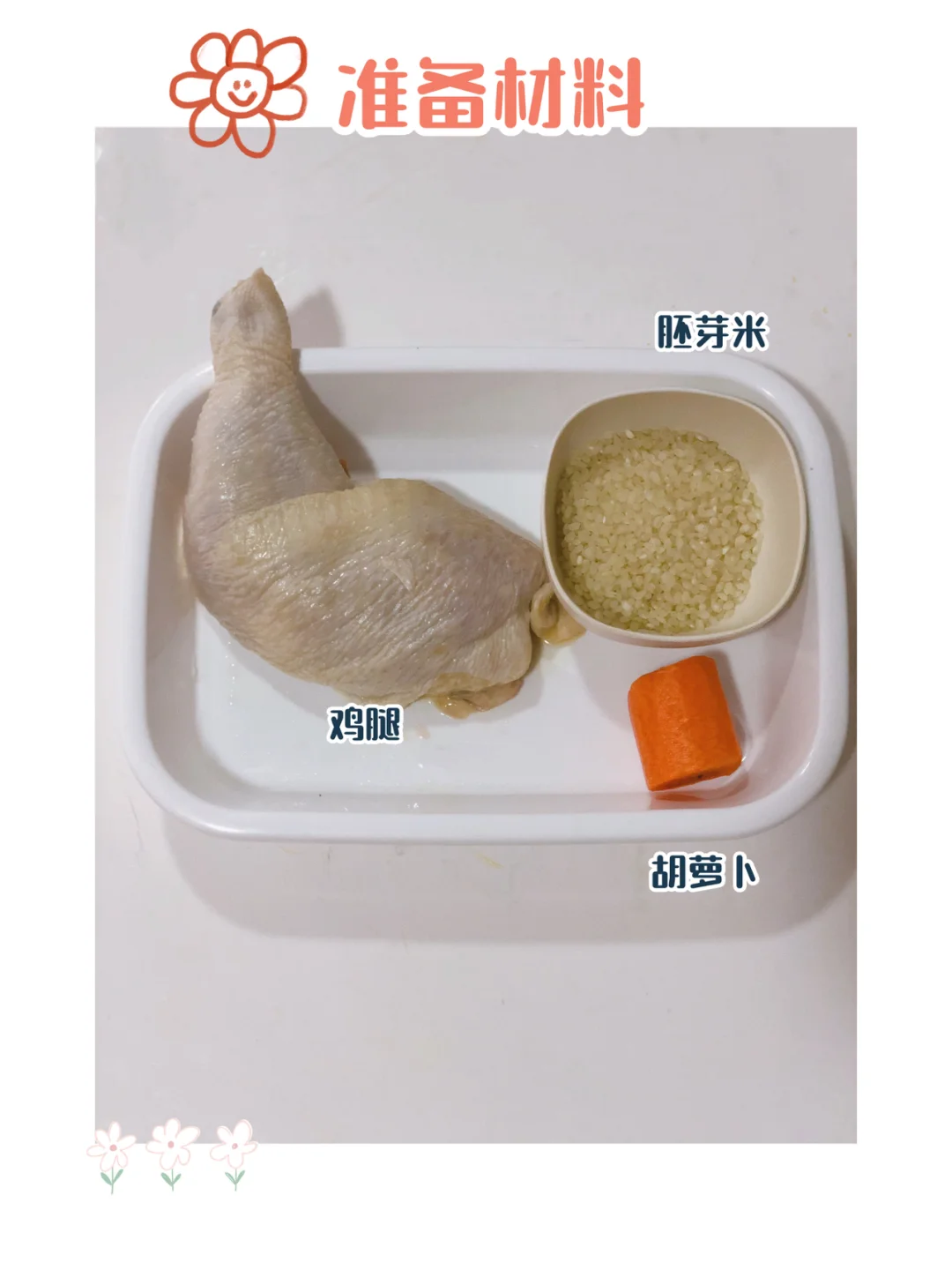 ✅准备材料:鸡腿一只,胚芽米,胡萝卜